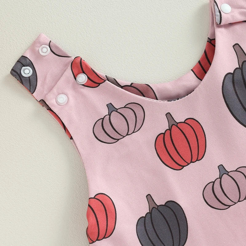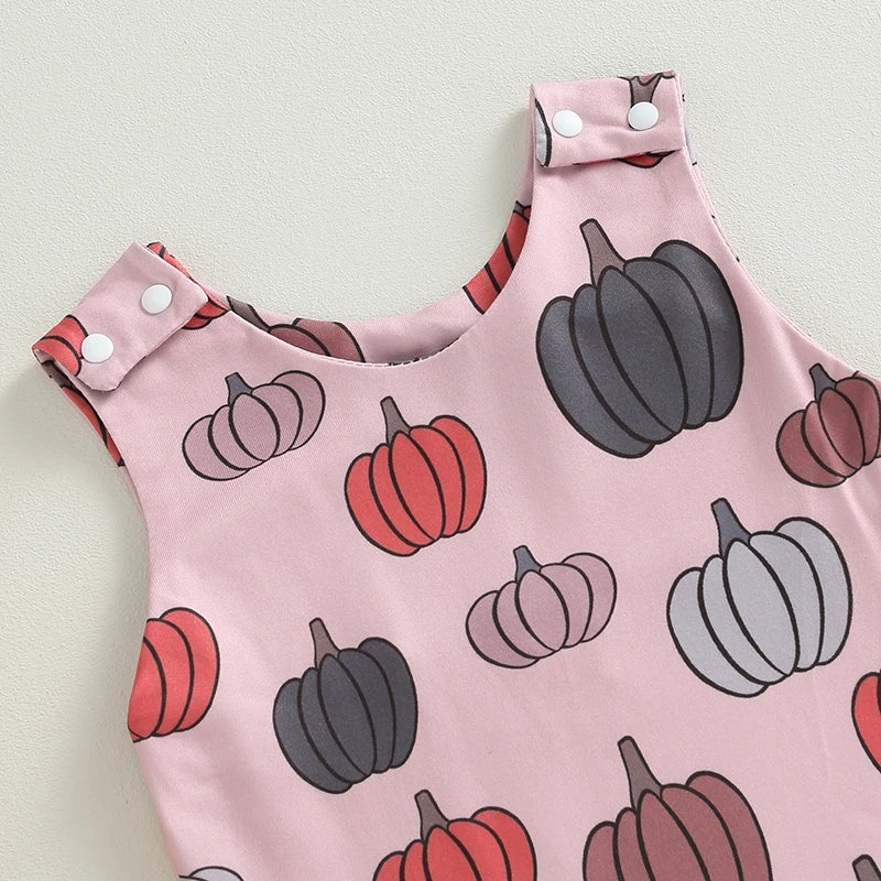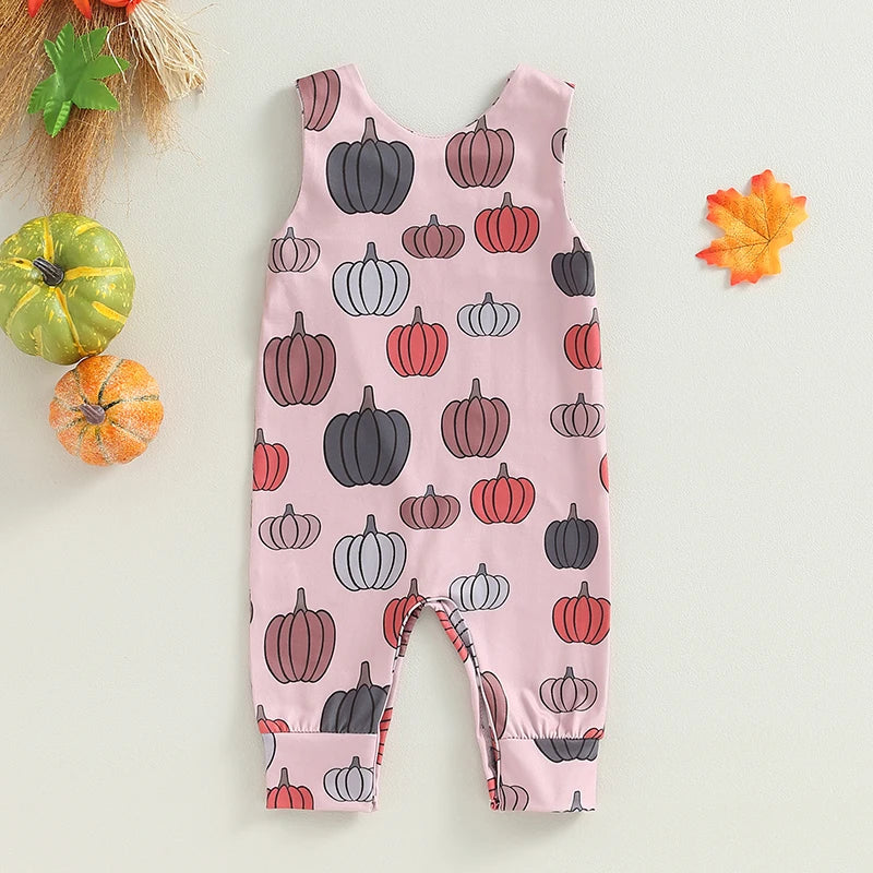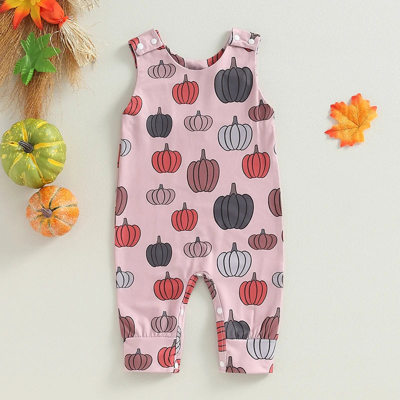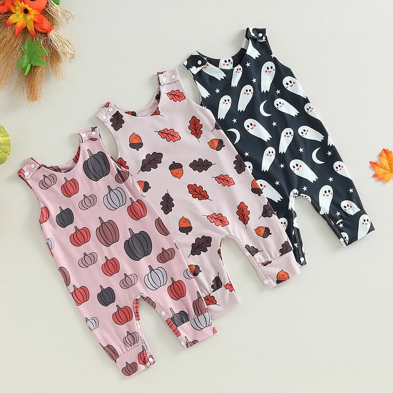 0-18M Baby Halloween Jumpsuit - Sleeveless Crew Neck Pumpkin/Ghost/Leaves Print Romper