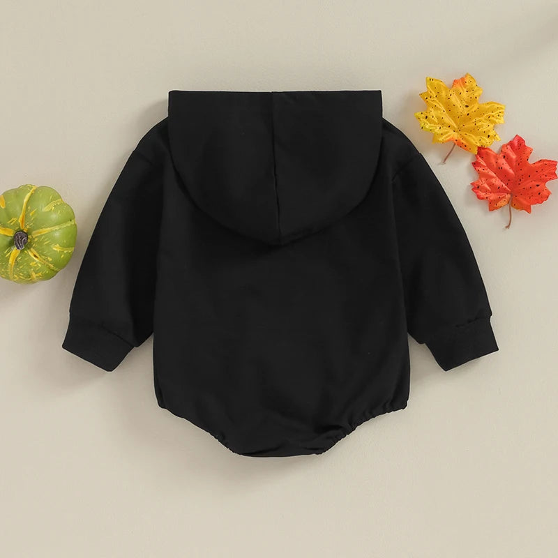 0-18M Baby Halloween Sweatshirt Romper - Funny Skeleton Print, Long Sleeve Hooded Jumpsuit Clothes