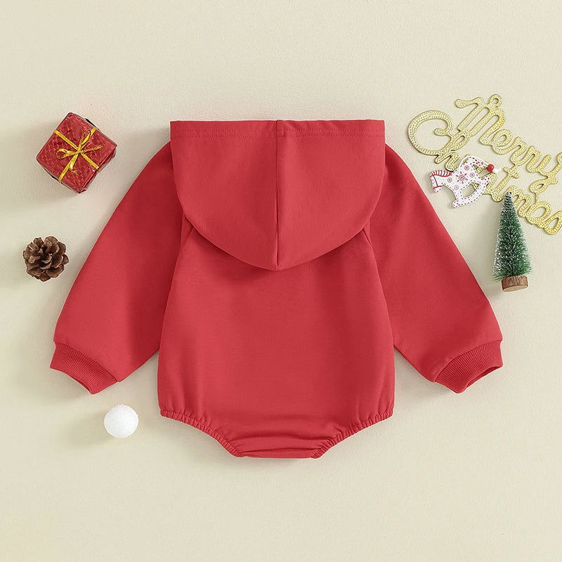 Get your baby ready for their first Christmas in style with this adorable hooded romper jumpsuit outfit that captures the magic of the season!