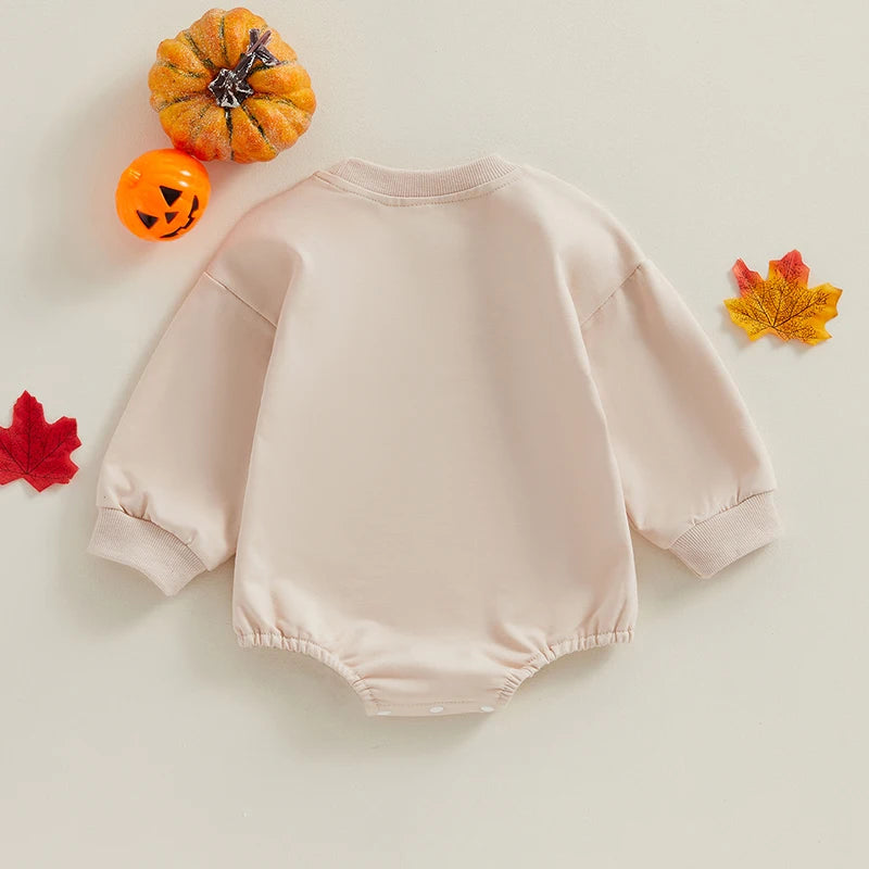 Adorned with a charming pumpkin letter print, this bodysuit adds a festive touch to your baby's wardrobe. Whether it's trick-or-treating or Halloween parties, this cute and comfy playsuit is sure to be a hit!