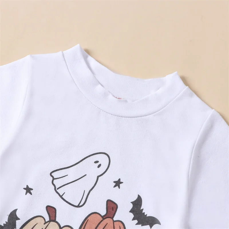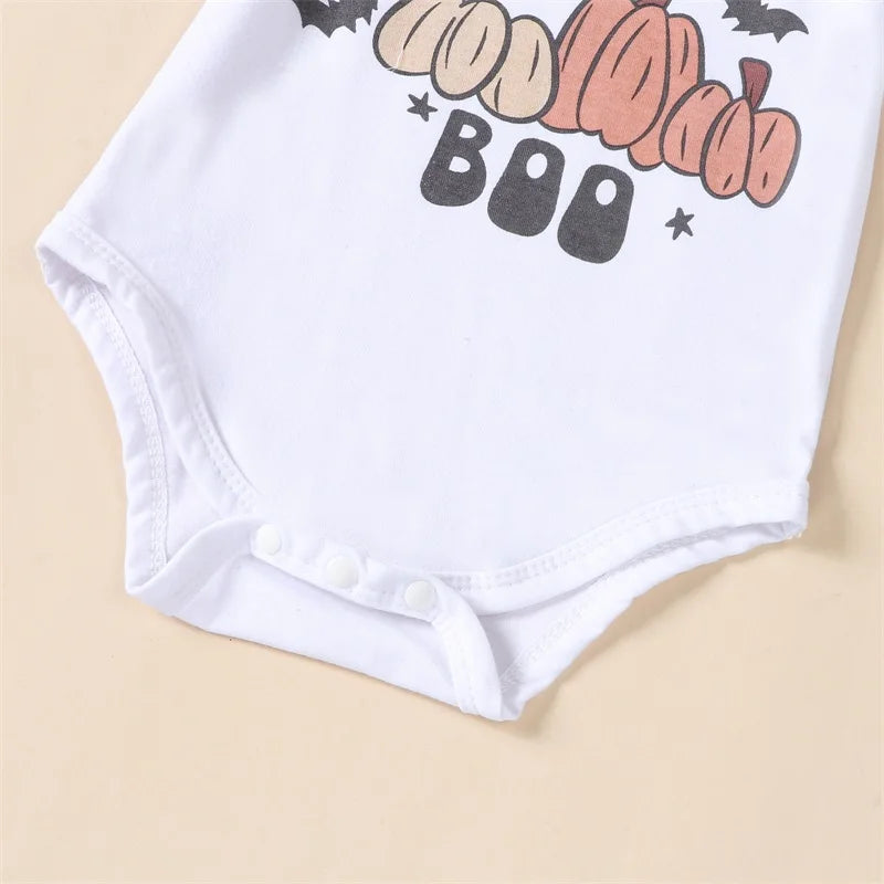 Crafted from soft and comfortable fabric, this outfit ensures your baby stays cozy and stylish during Halloween festivities. The pumpkin and ghost prints add a playful and spooky vibe to the romper, while the matching shorts complete the look with Halloween-themed details. Perfect for capturing precious memories during this special time of year.