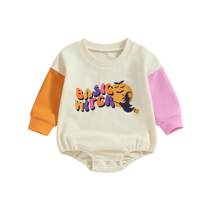 Prepare your little one for Halloween with our 0-24M Baby Girls Boys Sweatshirts Bodysuit. These adorable bodysuits feature charming pumpkin and letter prints, perfect for adding a festive touch to your baby's wardrobe during the spooky season.