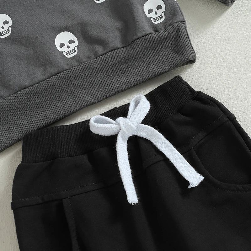 Make Halloween extra special for your baby with our Skull Print Long Sleeve Sweatshirt and Solid Pants set. Let your little one embrace the Halloween spirit in style with this cute and comfortable outfit.