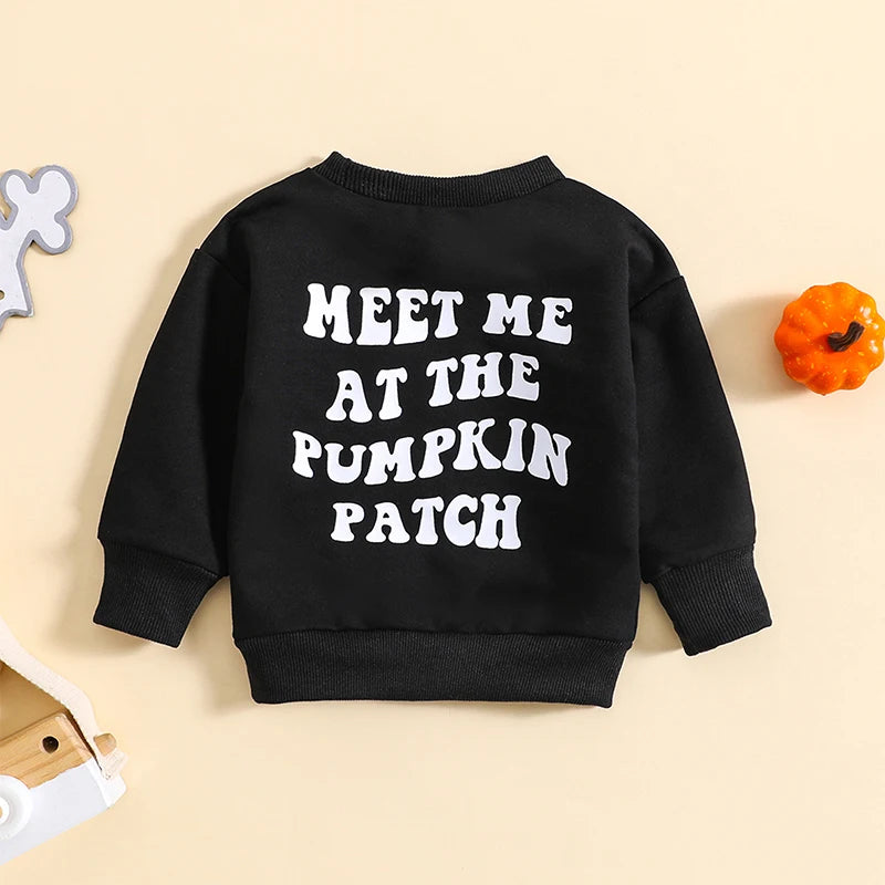 Get your little one ready for Halloween with our 0-3 Years Toddler Boys Halloween Sweatshirts. These black long sleeve tops feature a festive pumpkin print, making them perfect for adding a spooky touch to your toddler's wardrobe during the Halloween season.