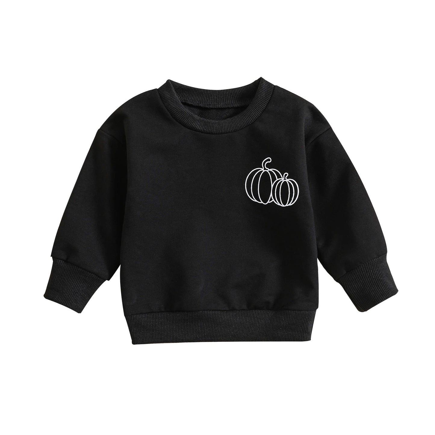 0-3 Years Halloween Sweatshirts - Black Long Sleeve Pumpkin Print Pullover Crew Neck Tops