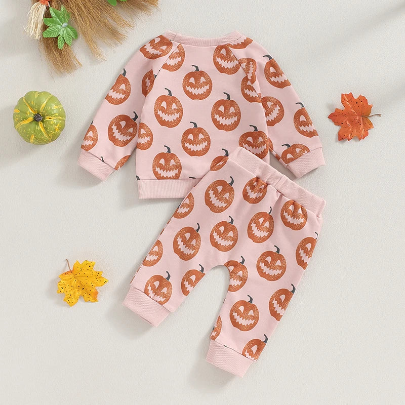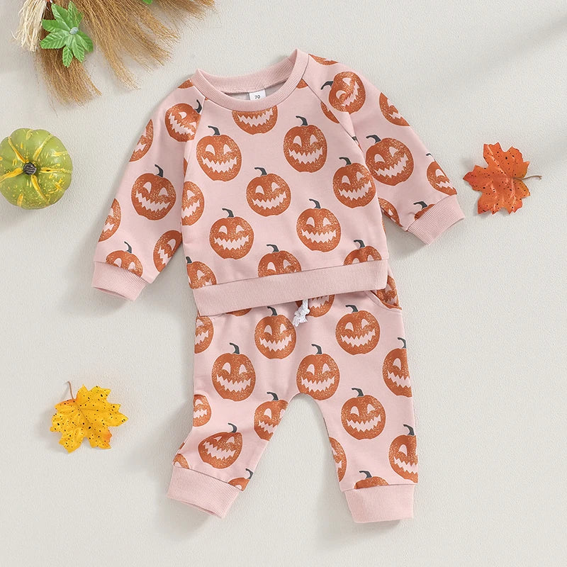 The set includes cozy sweatshirt tops and pants, designed to keep your baby comfortable and stylish during the fall months. The cute pumpkin and ghost motifs add a fun and festive touch to your baby's wardrobe.