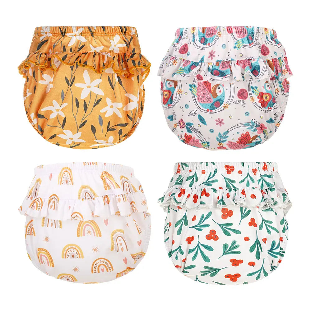 1 Pc Swimming Pants: Flower Edge Nappy - Soft Reusable Cloth Diaper with Printed Patterns