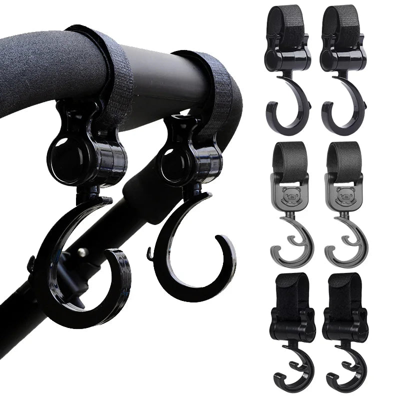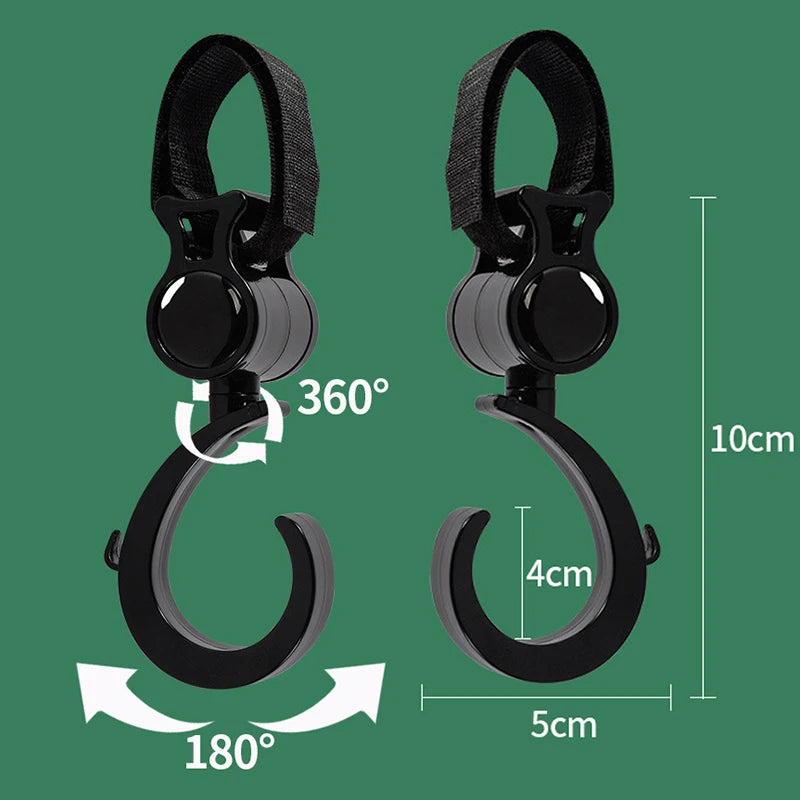 With 360-degree rotation capabilities, our hooks offer multi-purpose usage, allowing you to hang infant bags, organizers, or other accessories with ease. Whether you're out for a stroll or traveling in the car, these hooks make it convenient to keep essentials within reach.