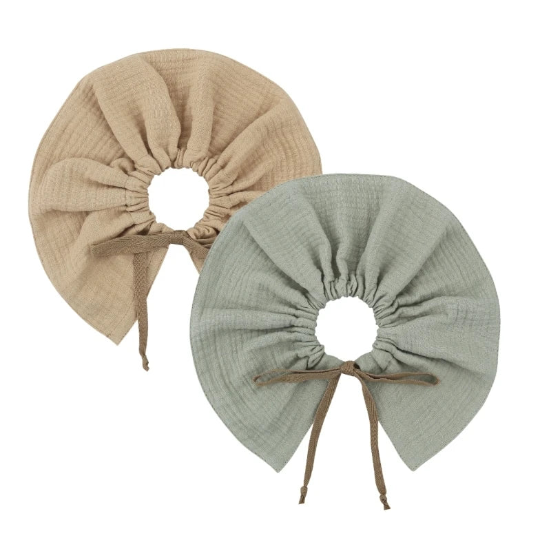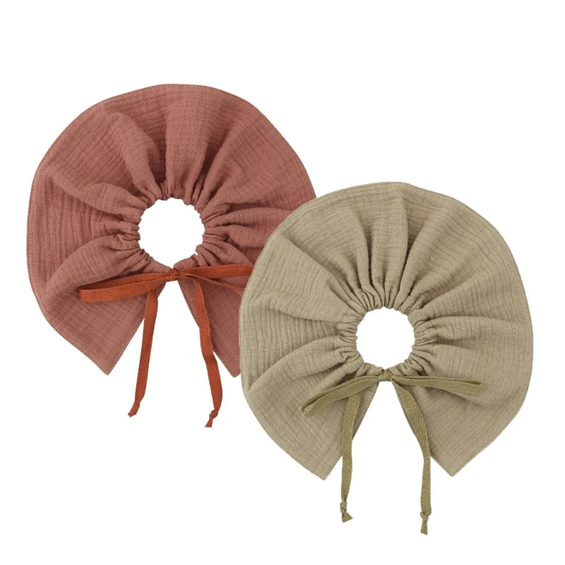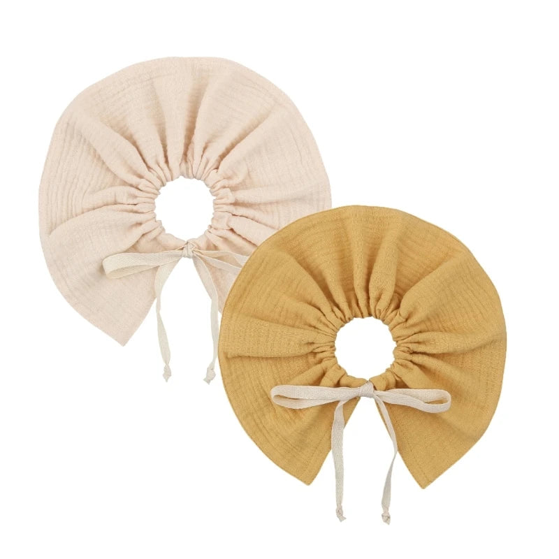 Introducing our set of 2 solid color ruffle cotton gauze baby bibs, perfect for toddlers and newborns. Crafted from soft and breathable cotton gauze fabric, these bibs offer comfort and protection during feeding time. The ruffle detailing adds a charming touch, making them a stylish accessory for your baby's outfit.