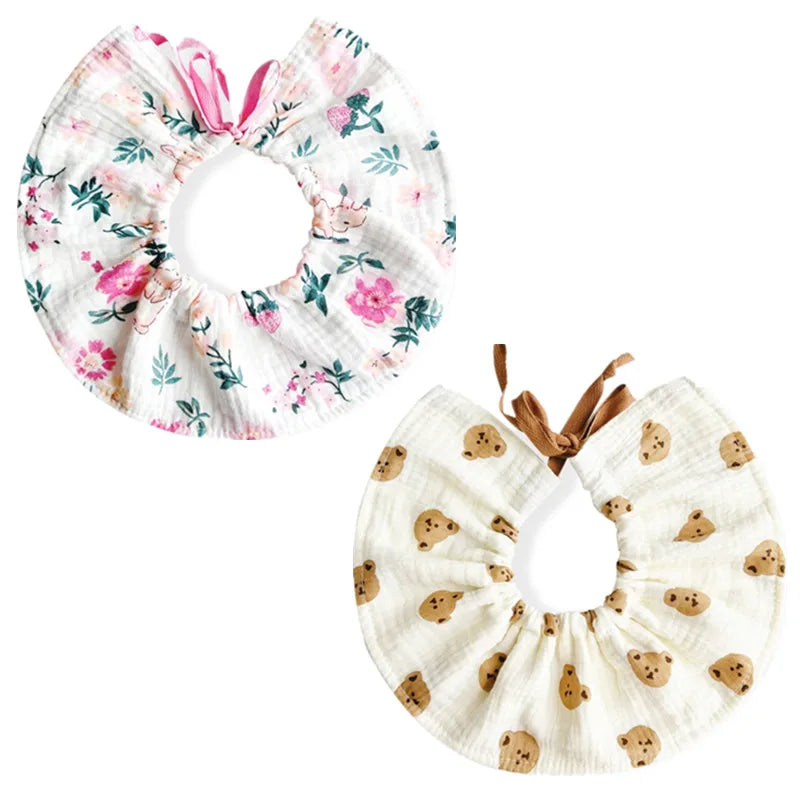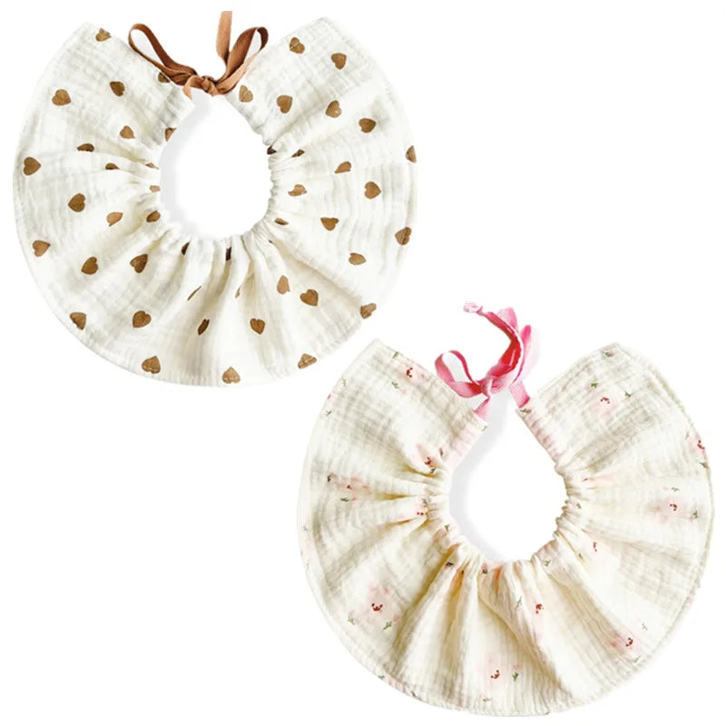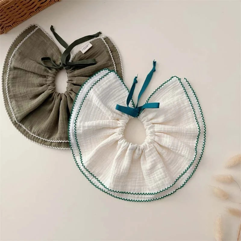 2 Pcs Solid Color Ruffle Cotton Gauze Baby Bibs for Toddlers and Newborns