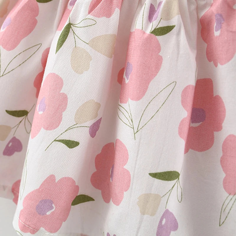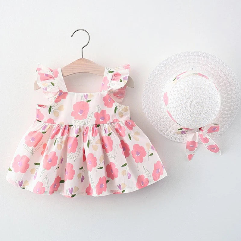 2-Piece Summer Outfit Baby Girl Costume - Cute Flowers Princess Beach Dress with Sunhat
