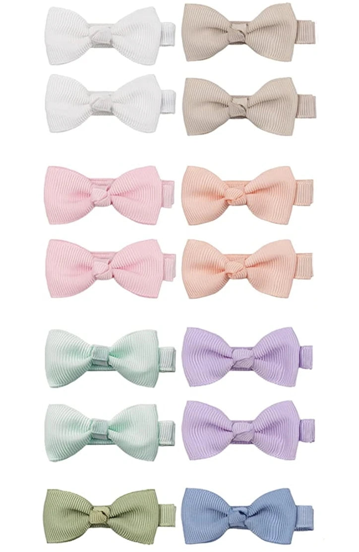 Choose this set of cute and handmade hair clips for your baby girl and let her showcase her style with our 20pcs Solid Ribbon Bowknot Hair Clips.
