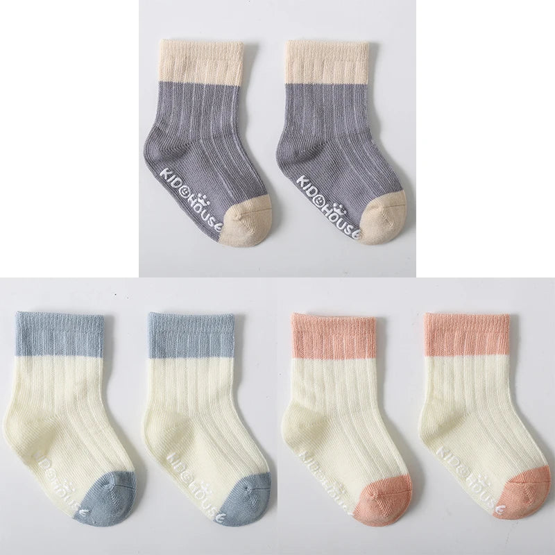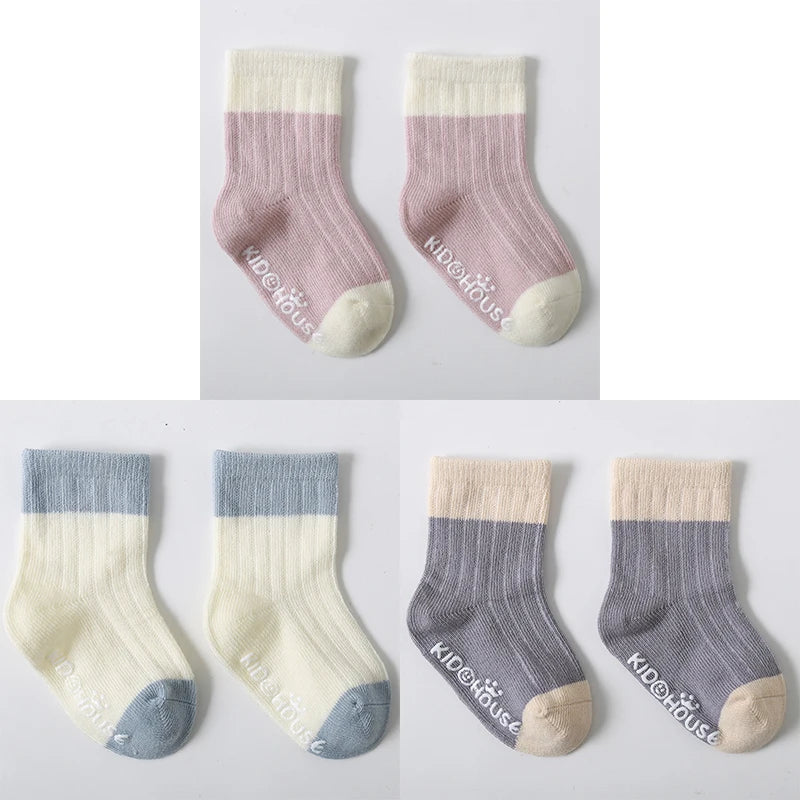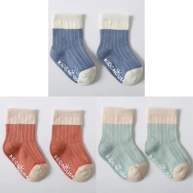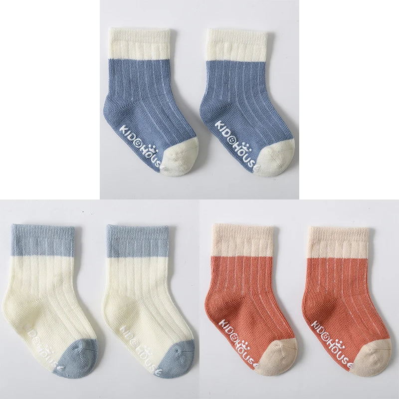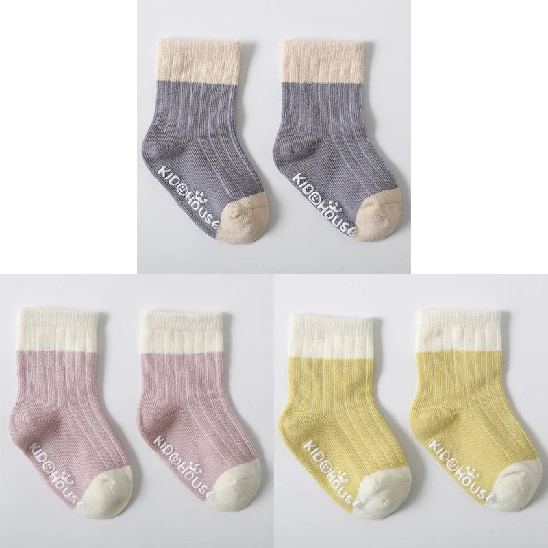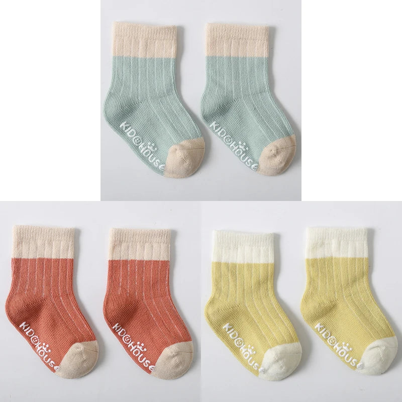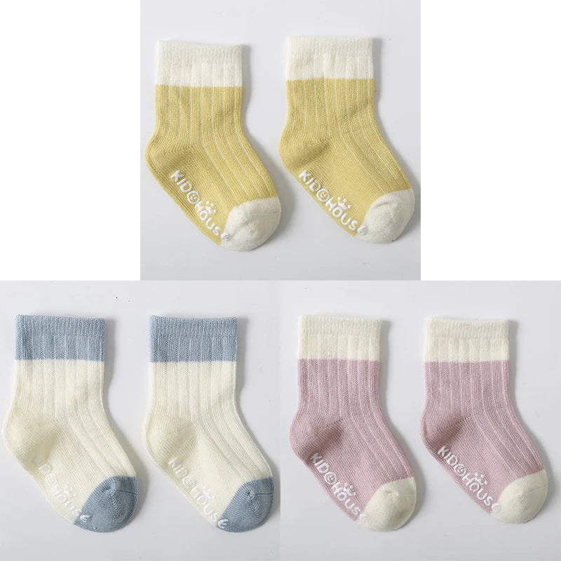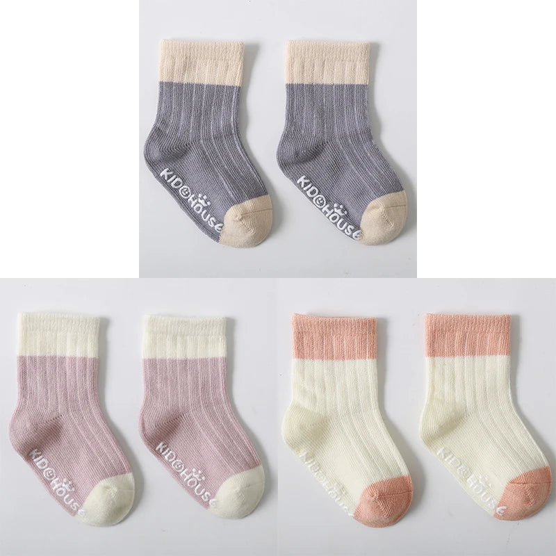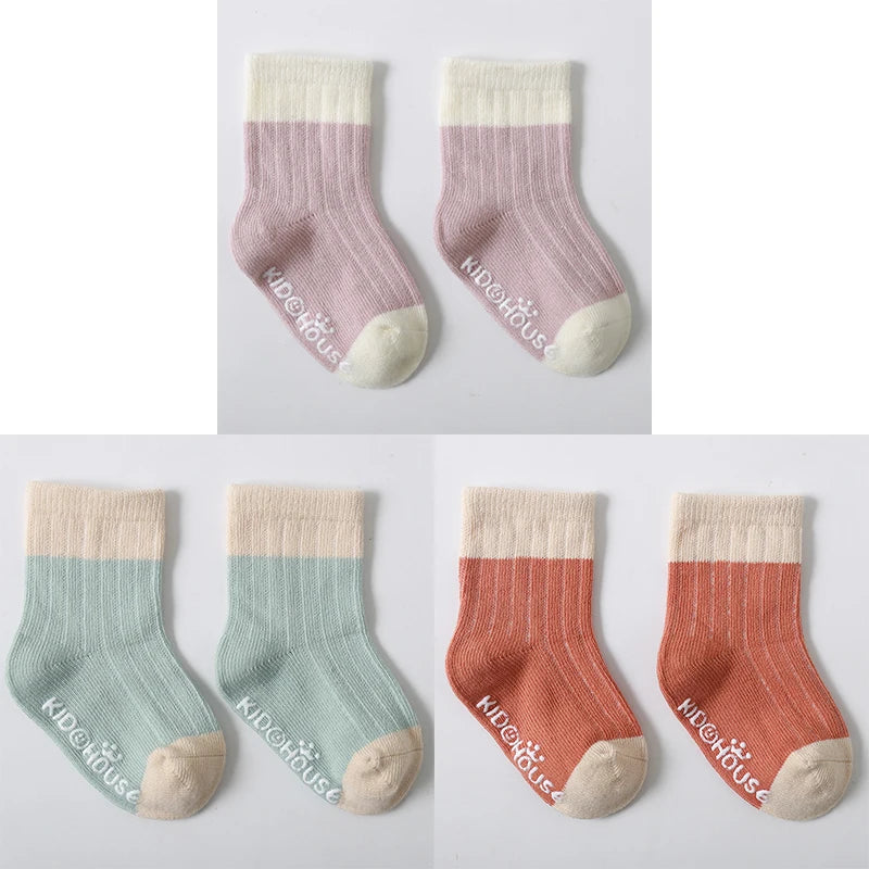 3 Pairs/Lot Children's Socks - Solid and Striped Design, Anti-Slip