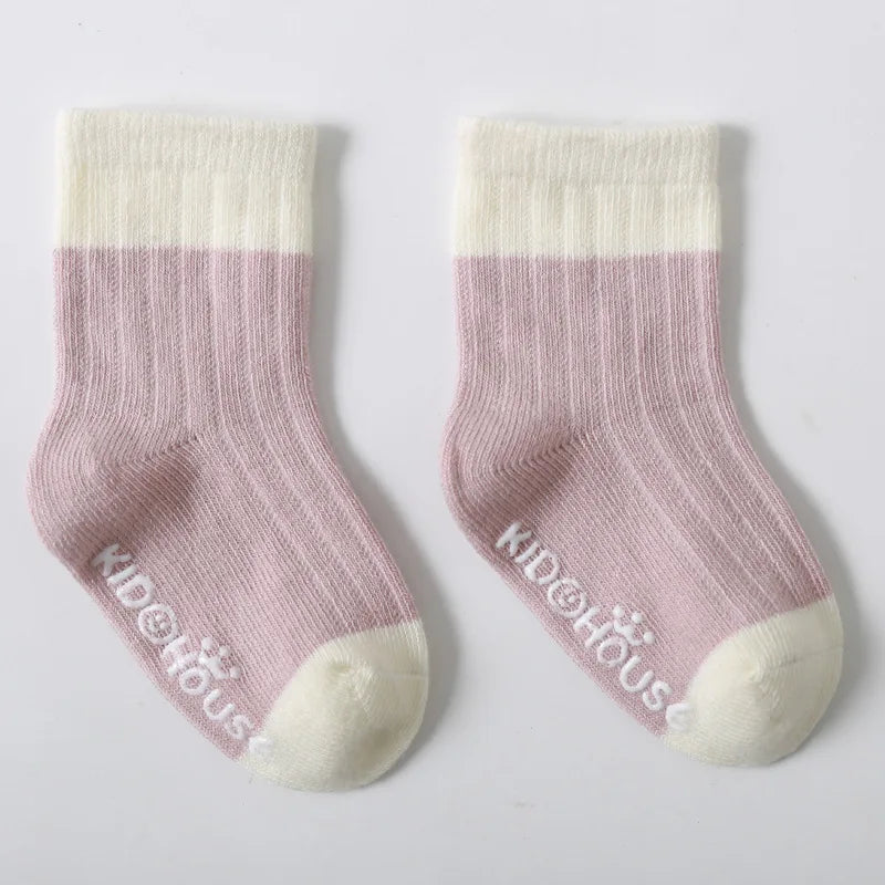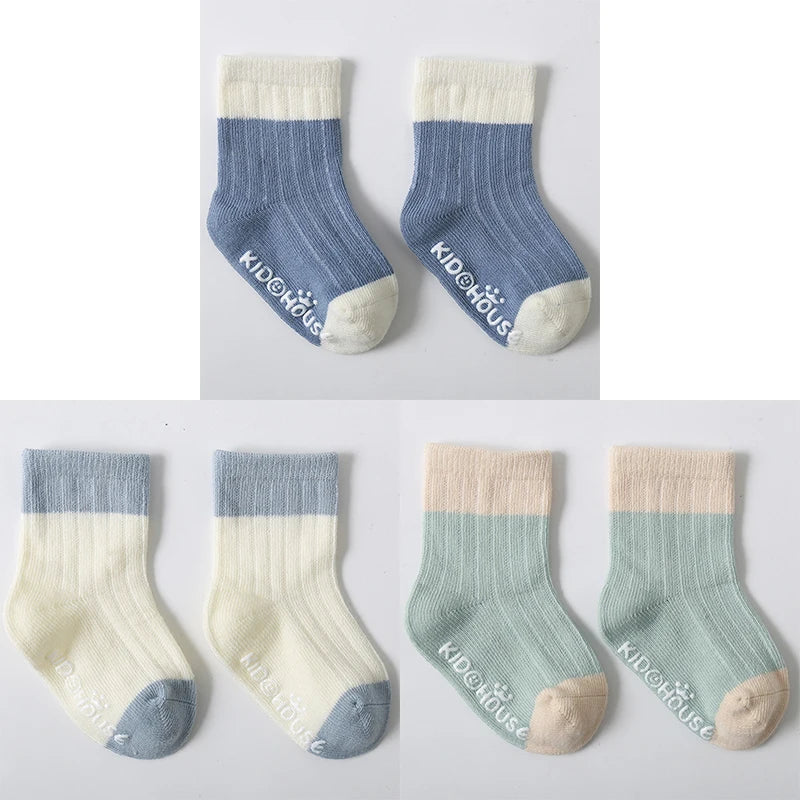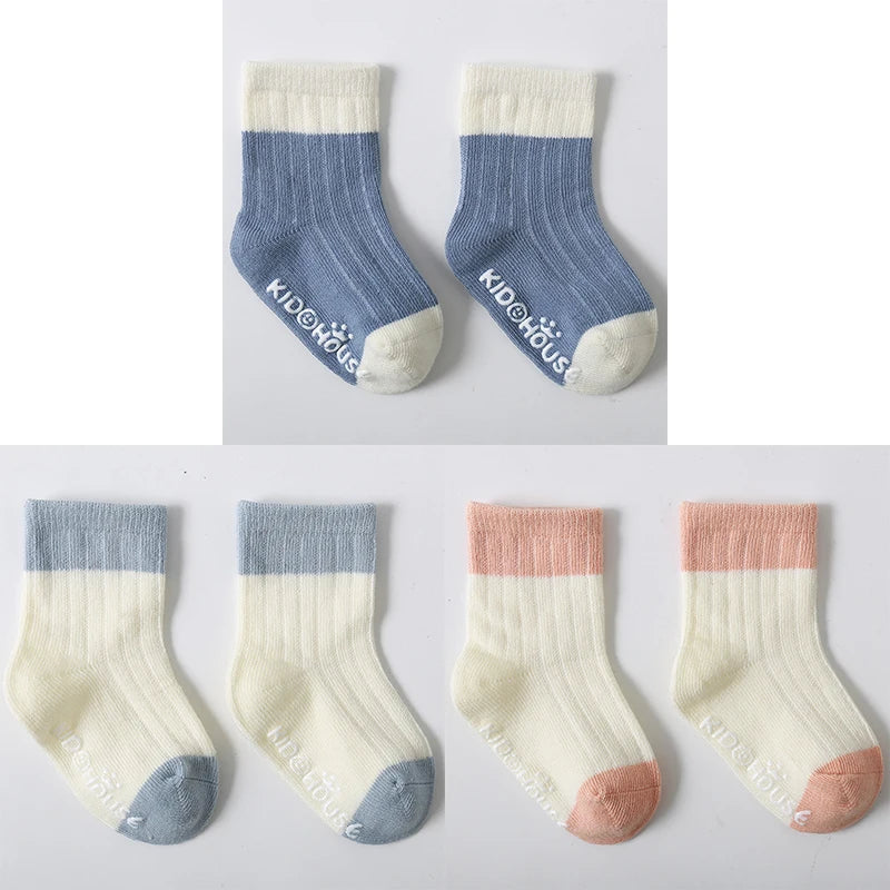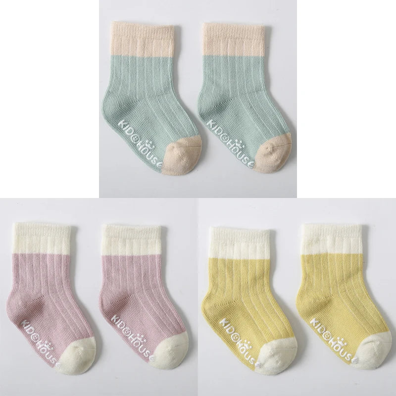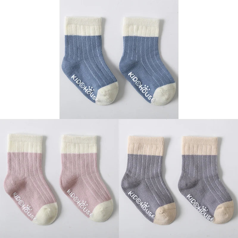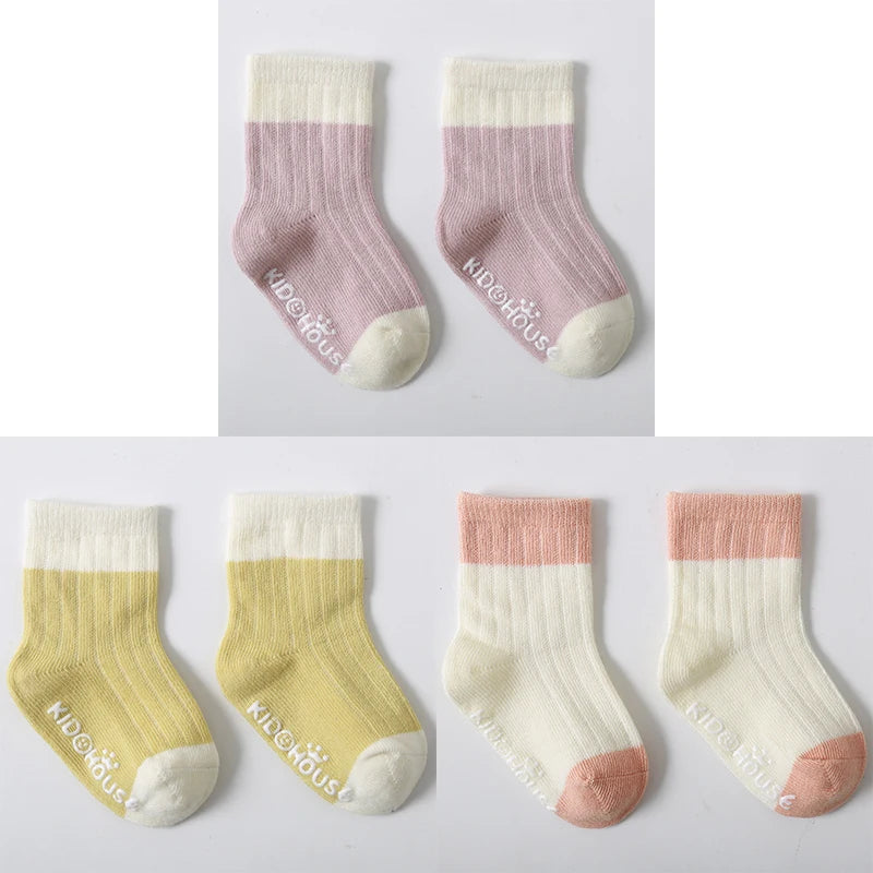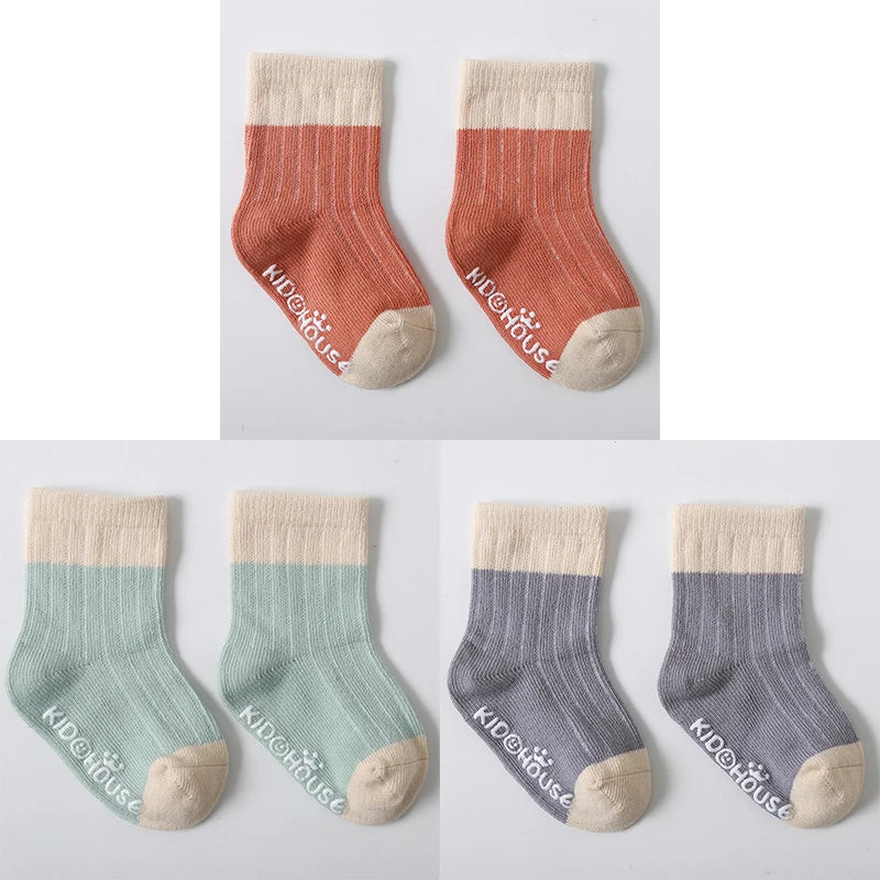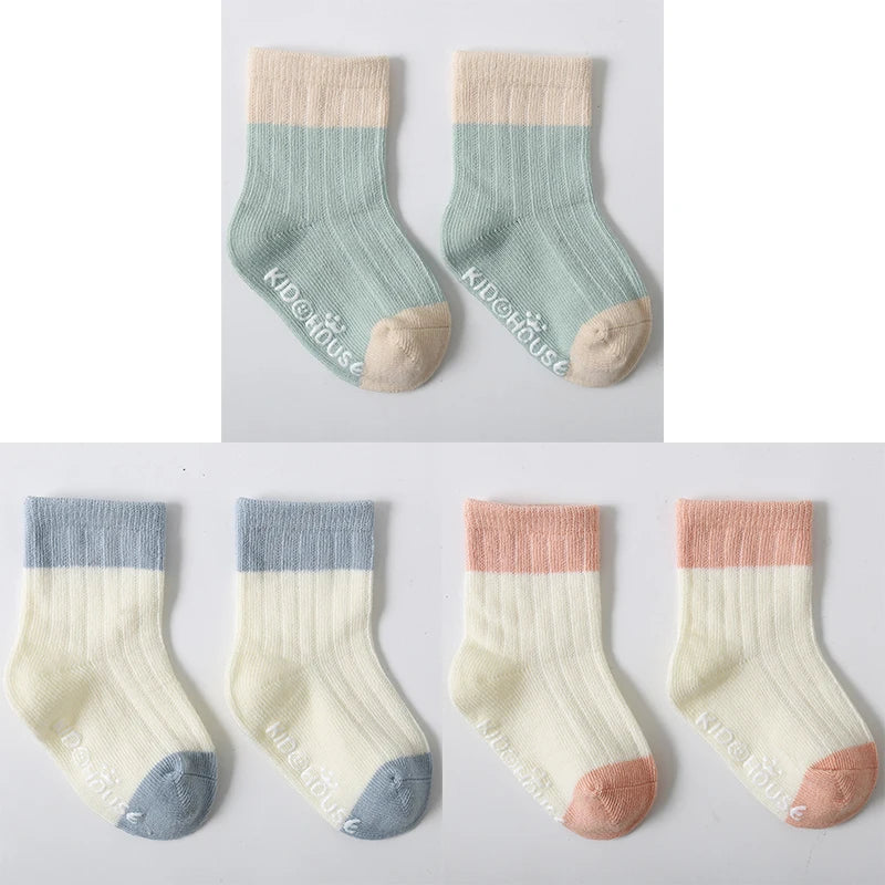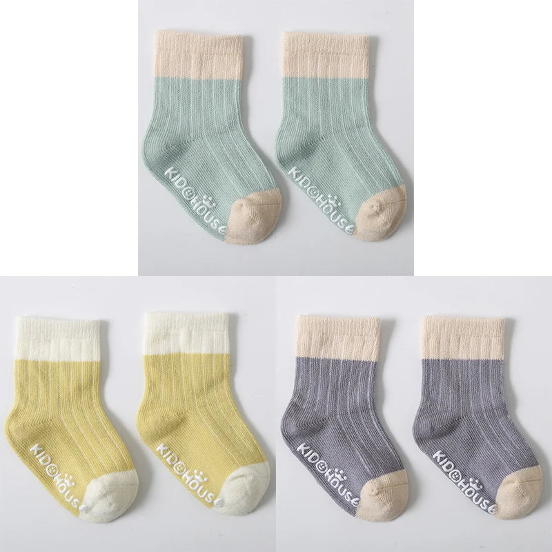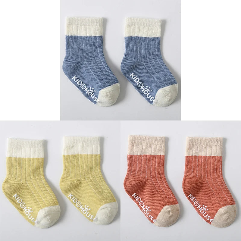 3 Pairs/Lot Children's Socks - Solid and Striped Design, Anti-Slip