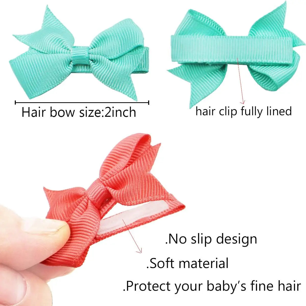 Crafted with colorful grosgrain ribbon, these mini hair bows add a cute and charming touch to any hairstyle. The attached clips ensure easy and secure placement, making them ideal for everyday wear or special occasions.