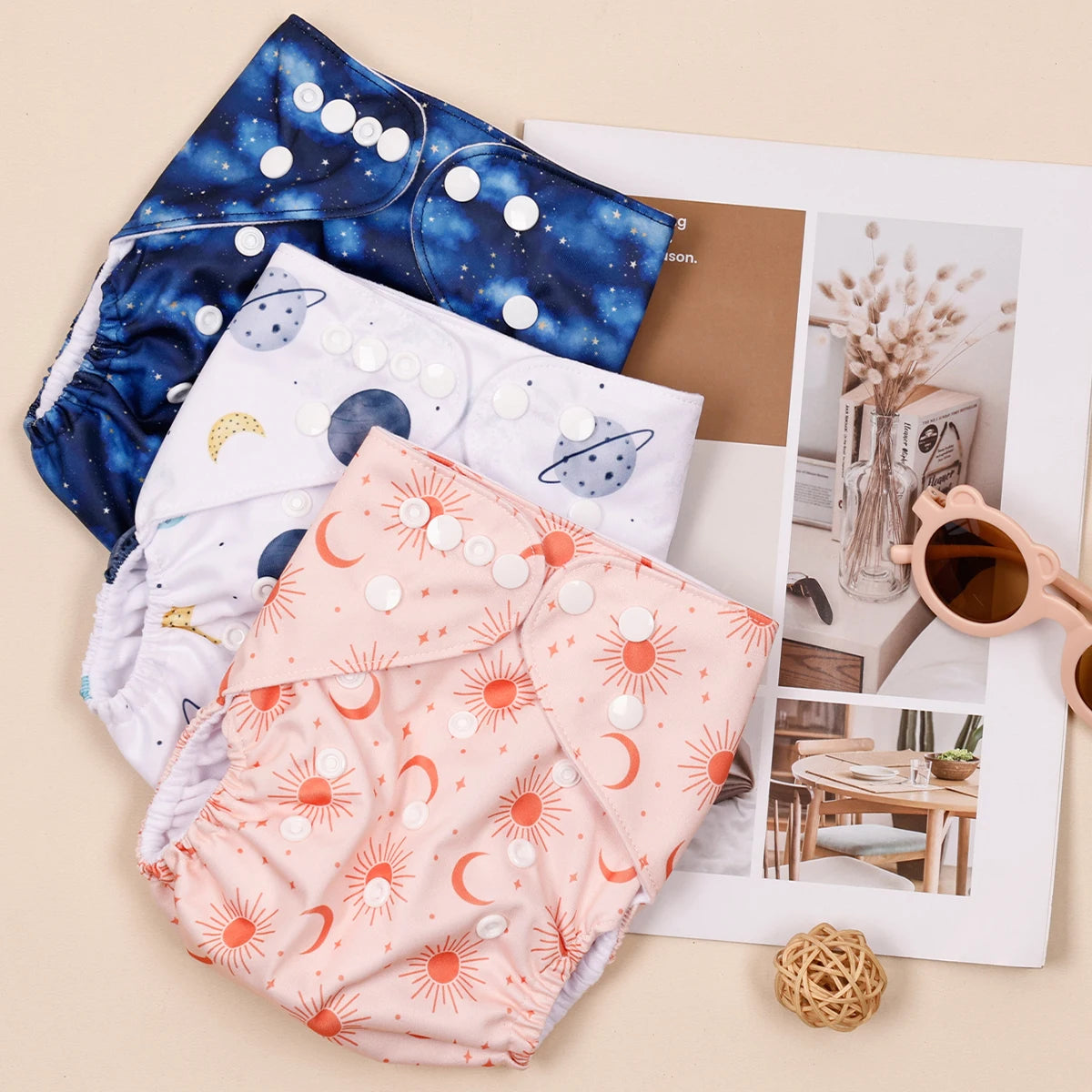 Choose this fashionable and practical diaper set for a sustainable solution to your baby's diapering needs. With their stylish prints and reliable performance, they offer both convenience and peace of mind for busy parents.
