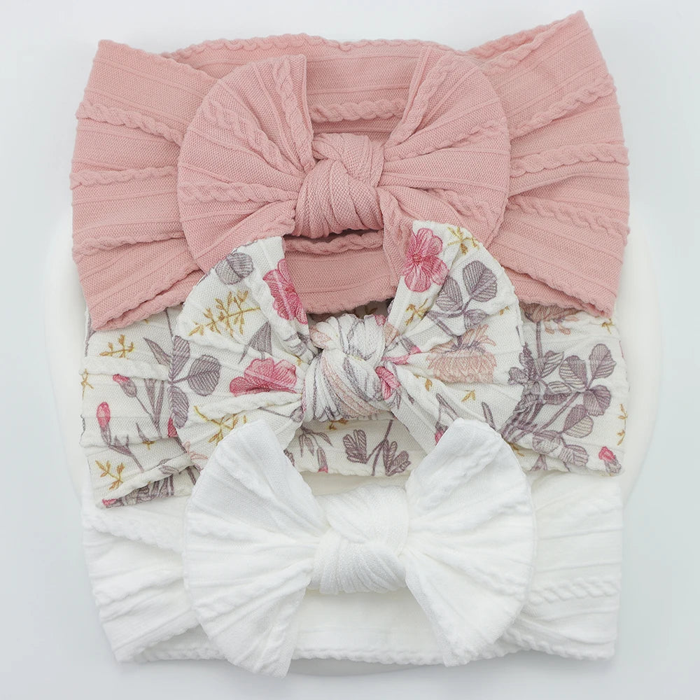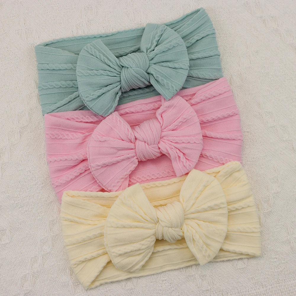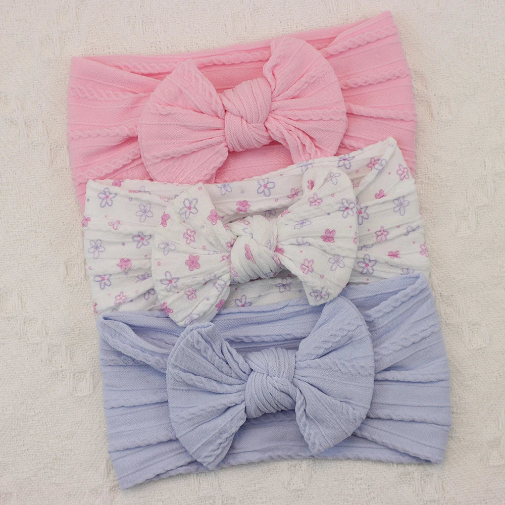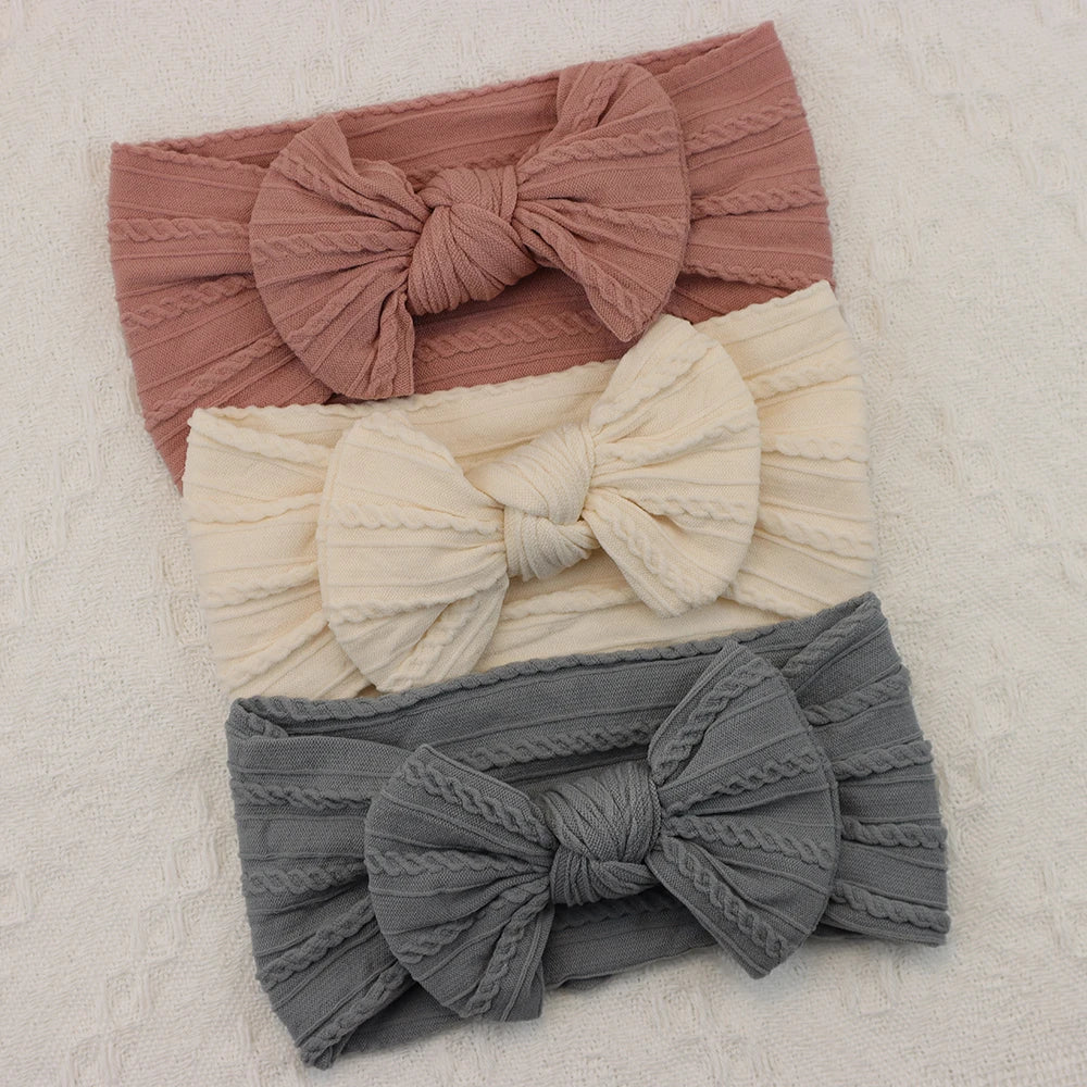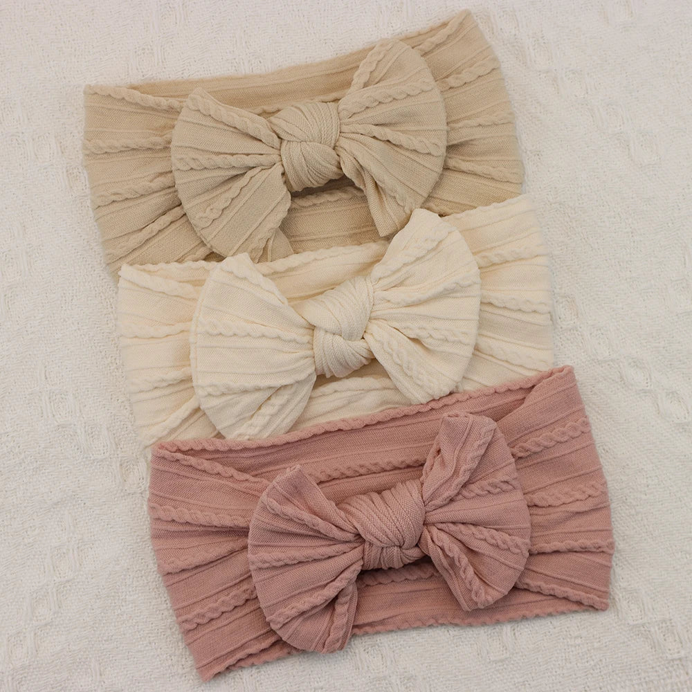 3Pcs Knit Bows Baby Headbands Set - Elastic Nylon Turban for Newborns and Children