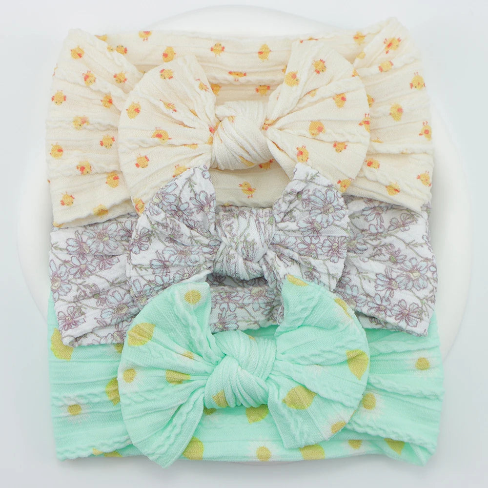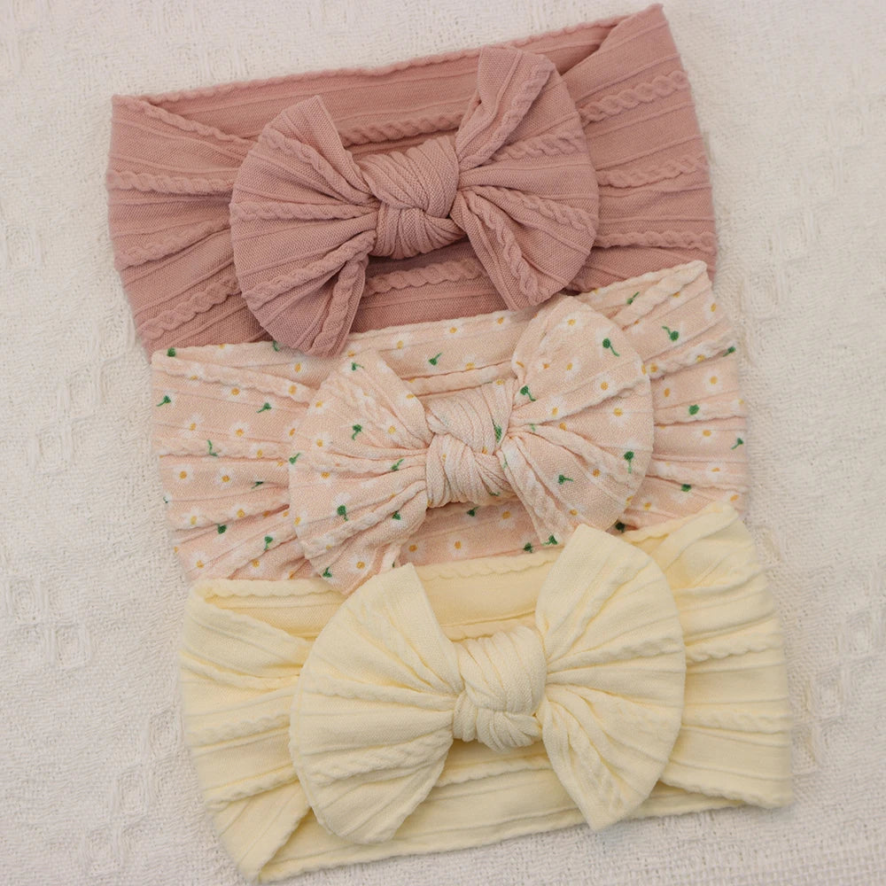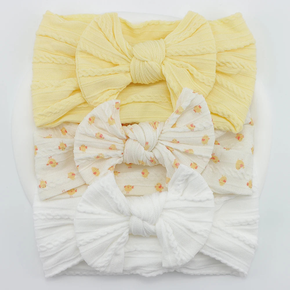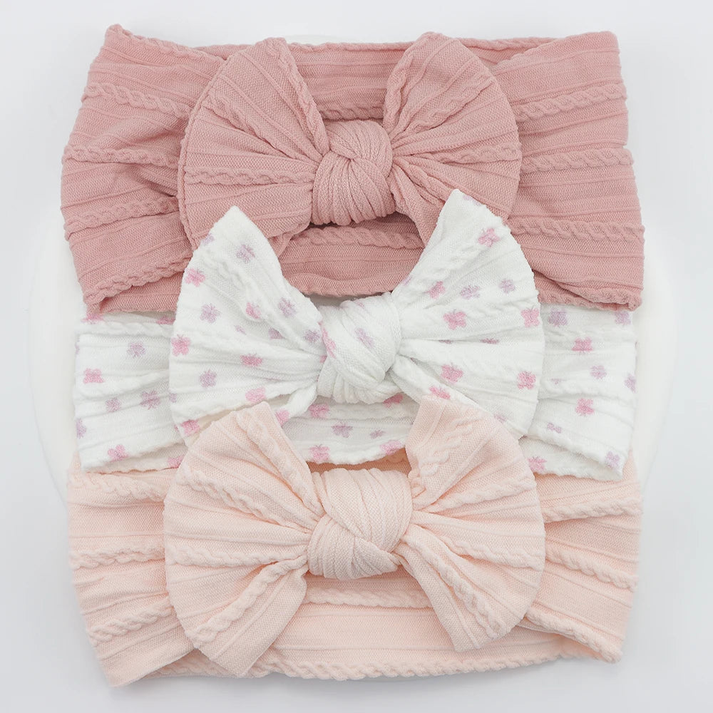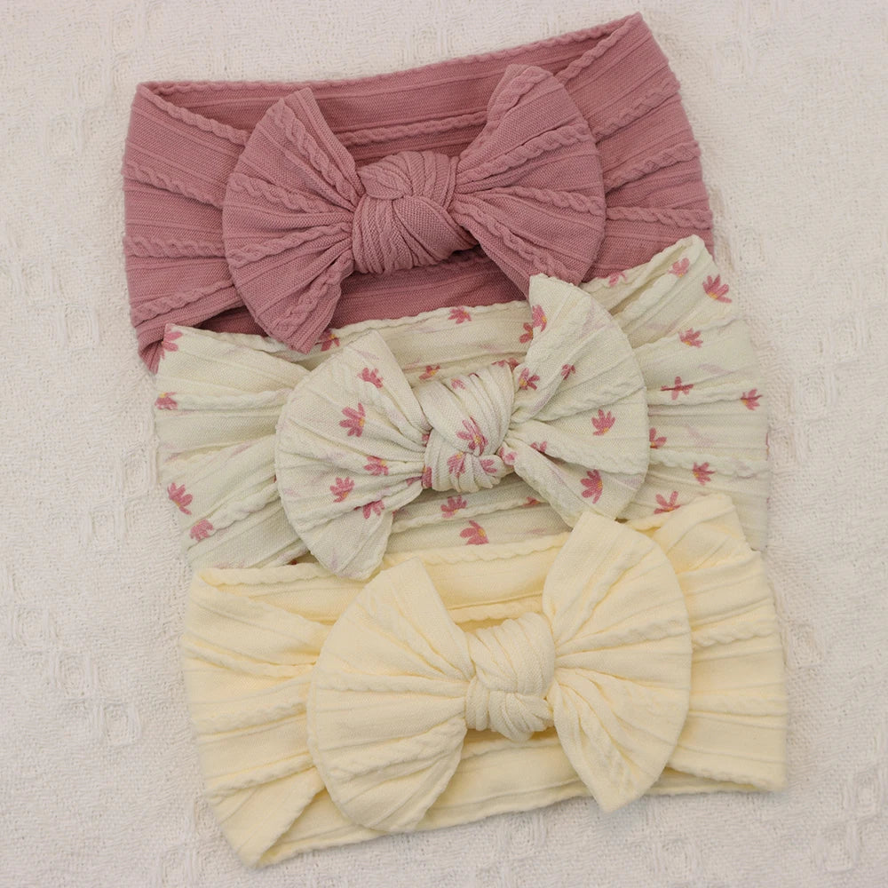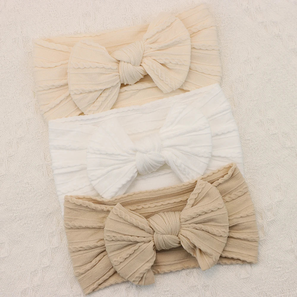 3Pcs Knit Bows Baby Headbands Set - Elastic Nylon Turban for Newborns and Children