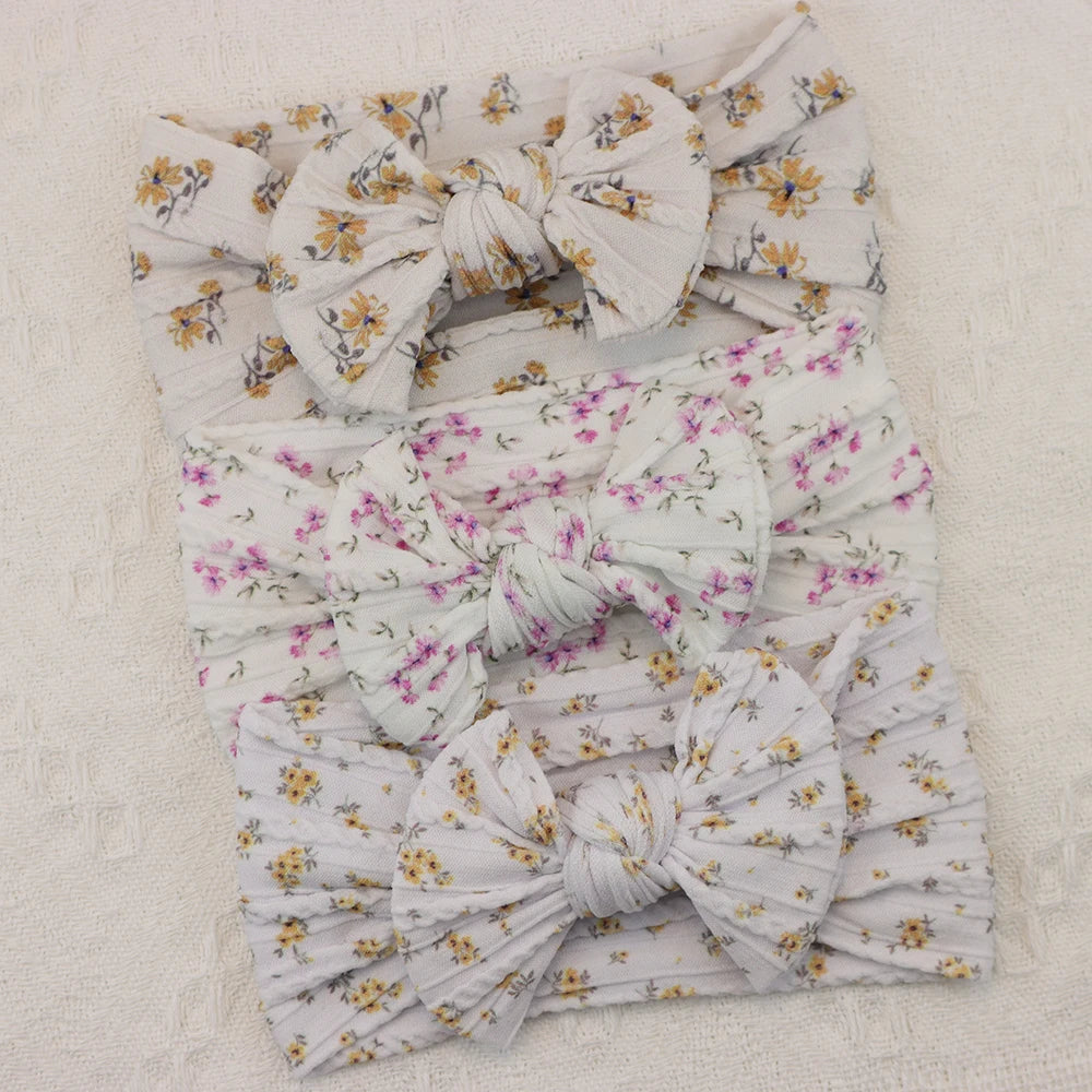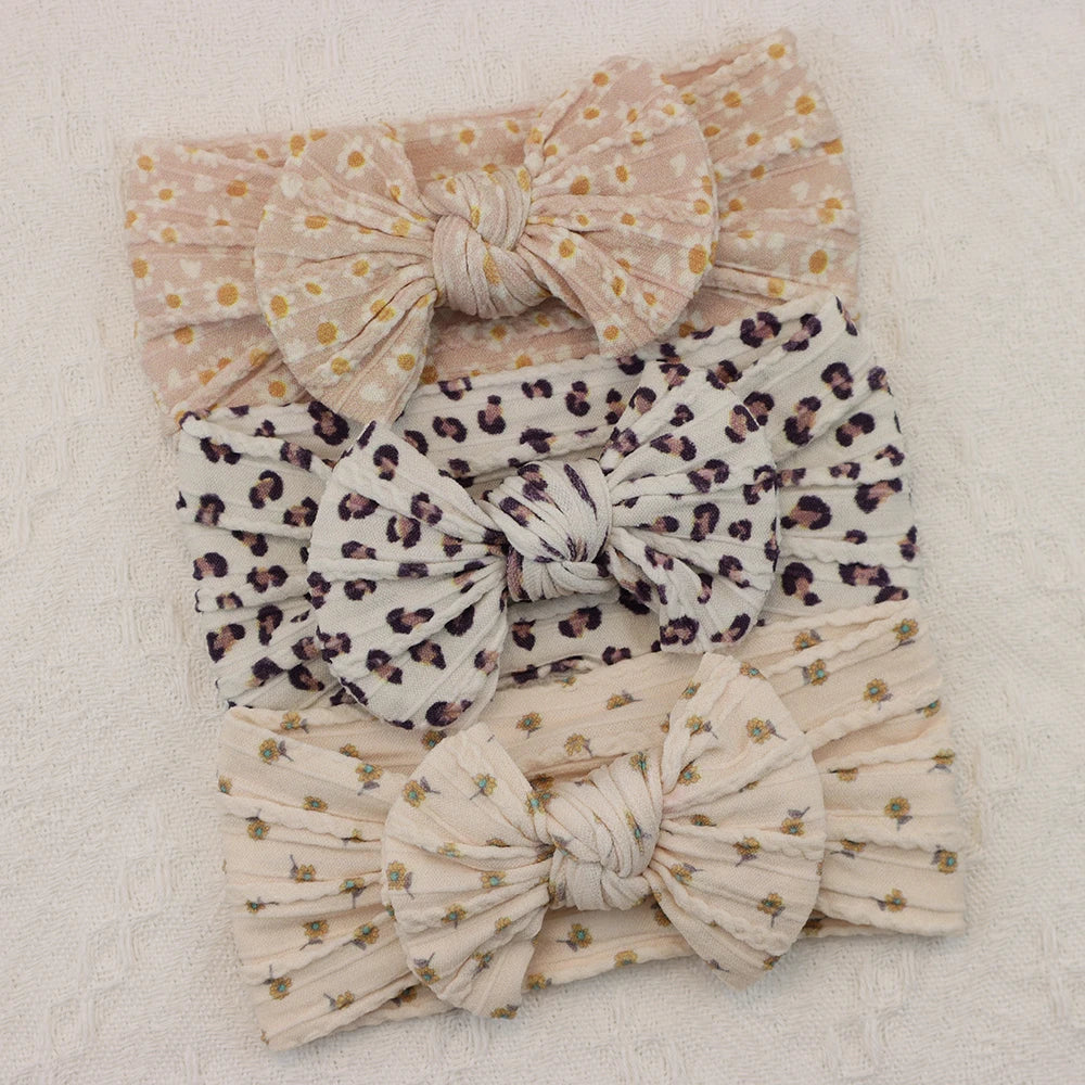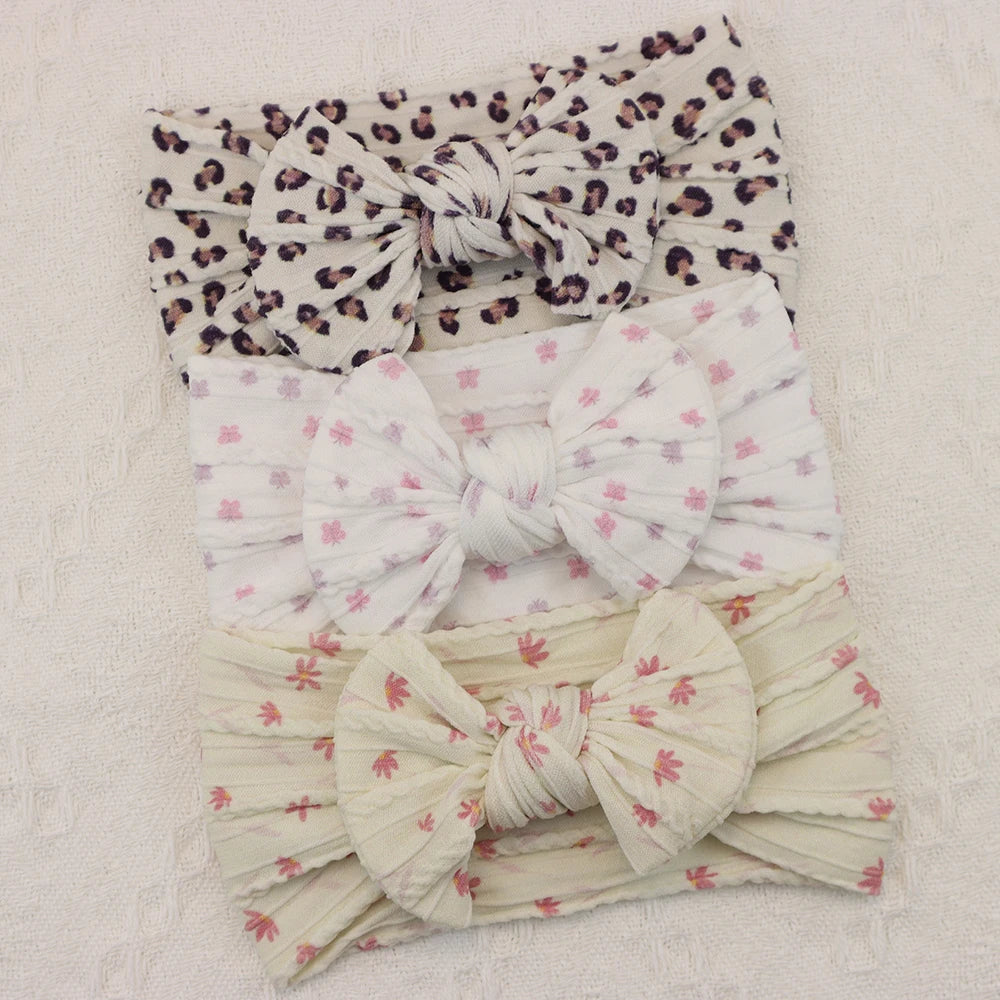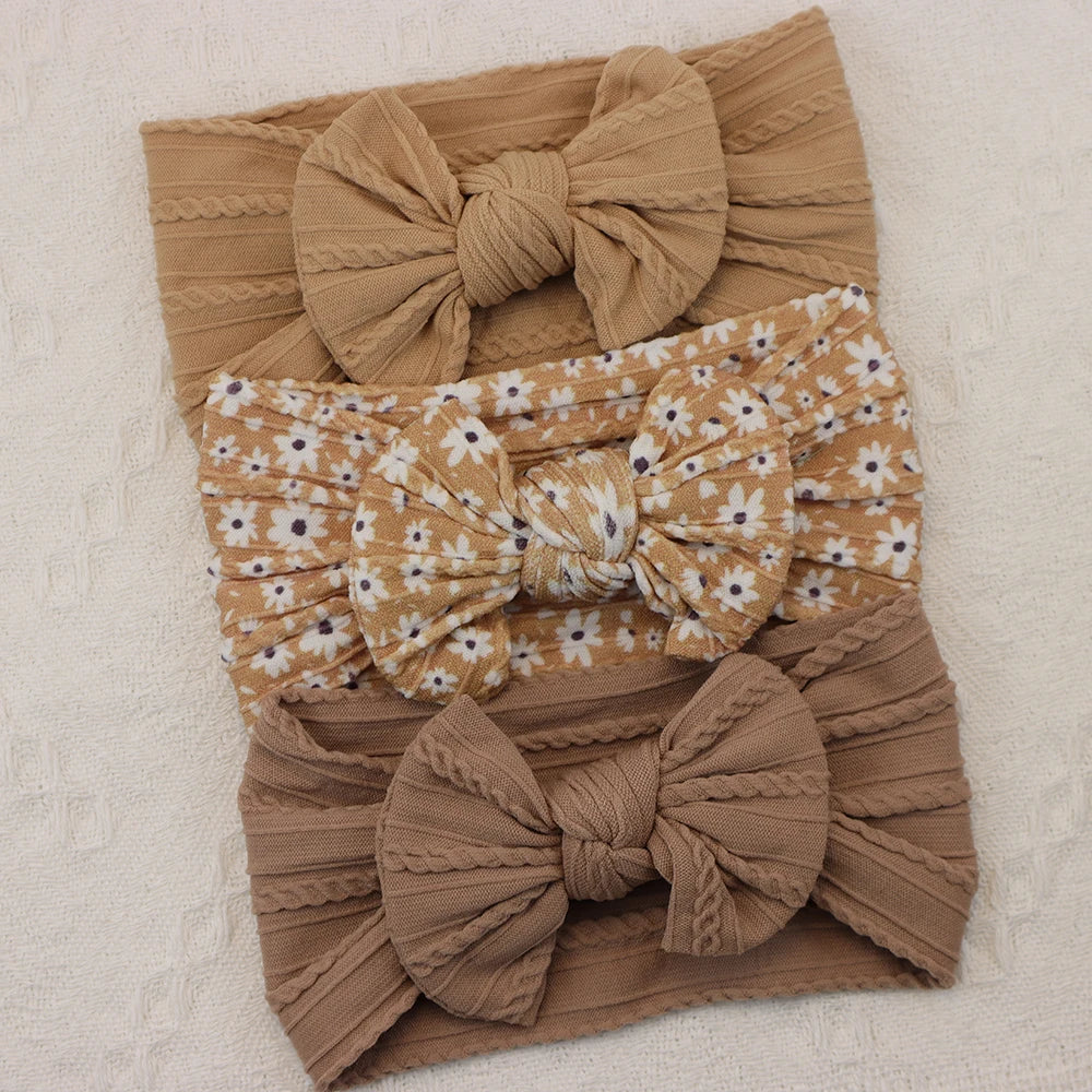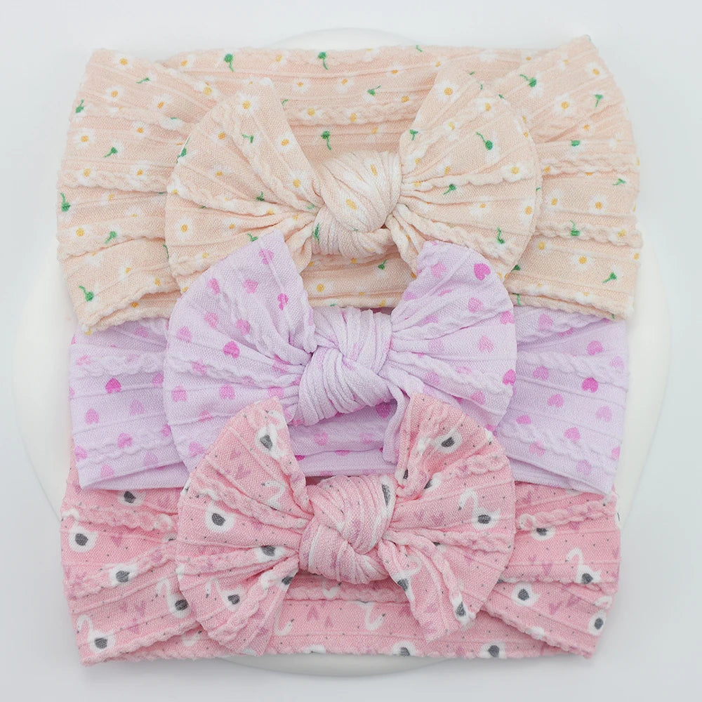 3Pcs Knit Bows Baby Headbands Set - Elastic Nylon Turban for Newborns and Children