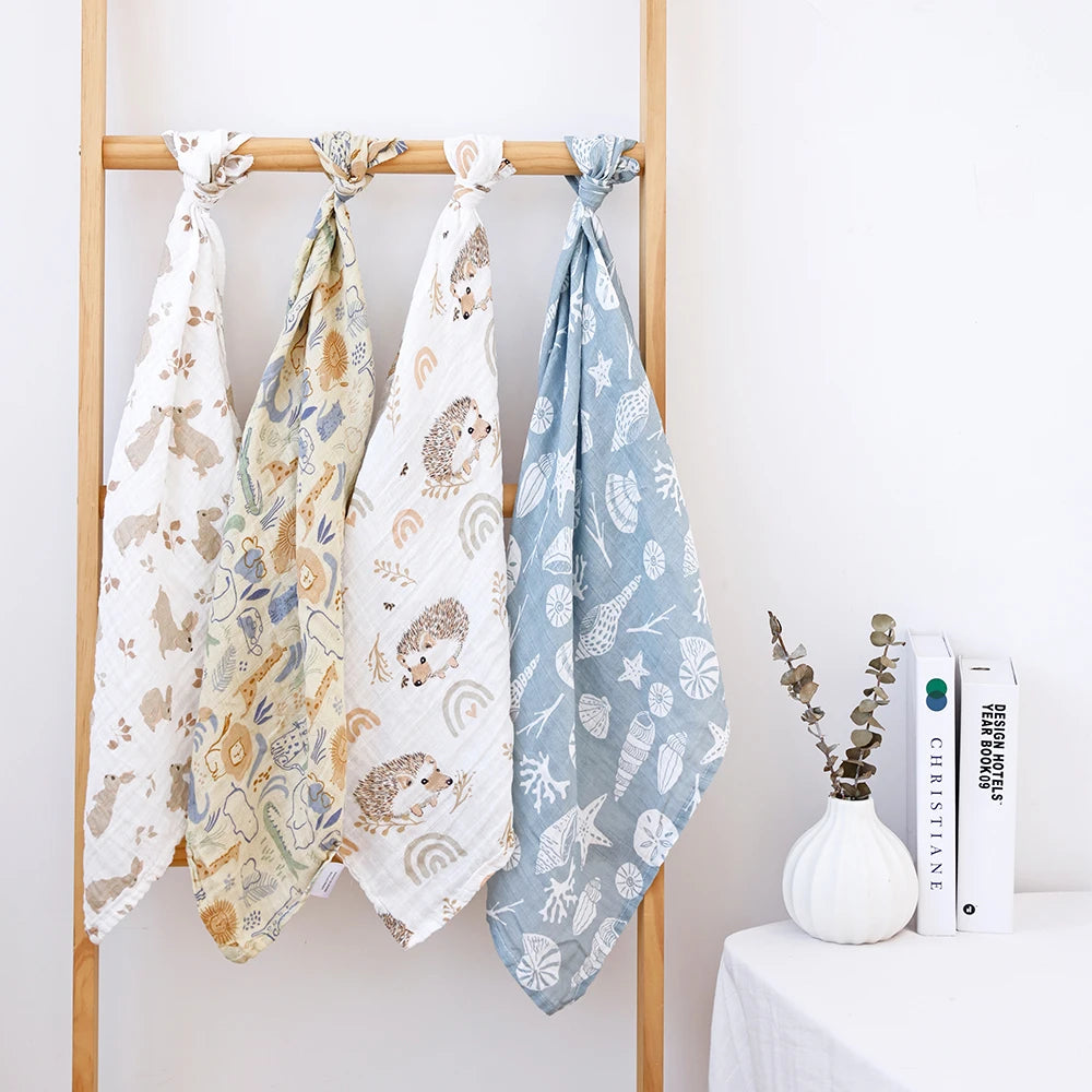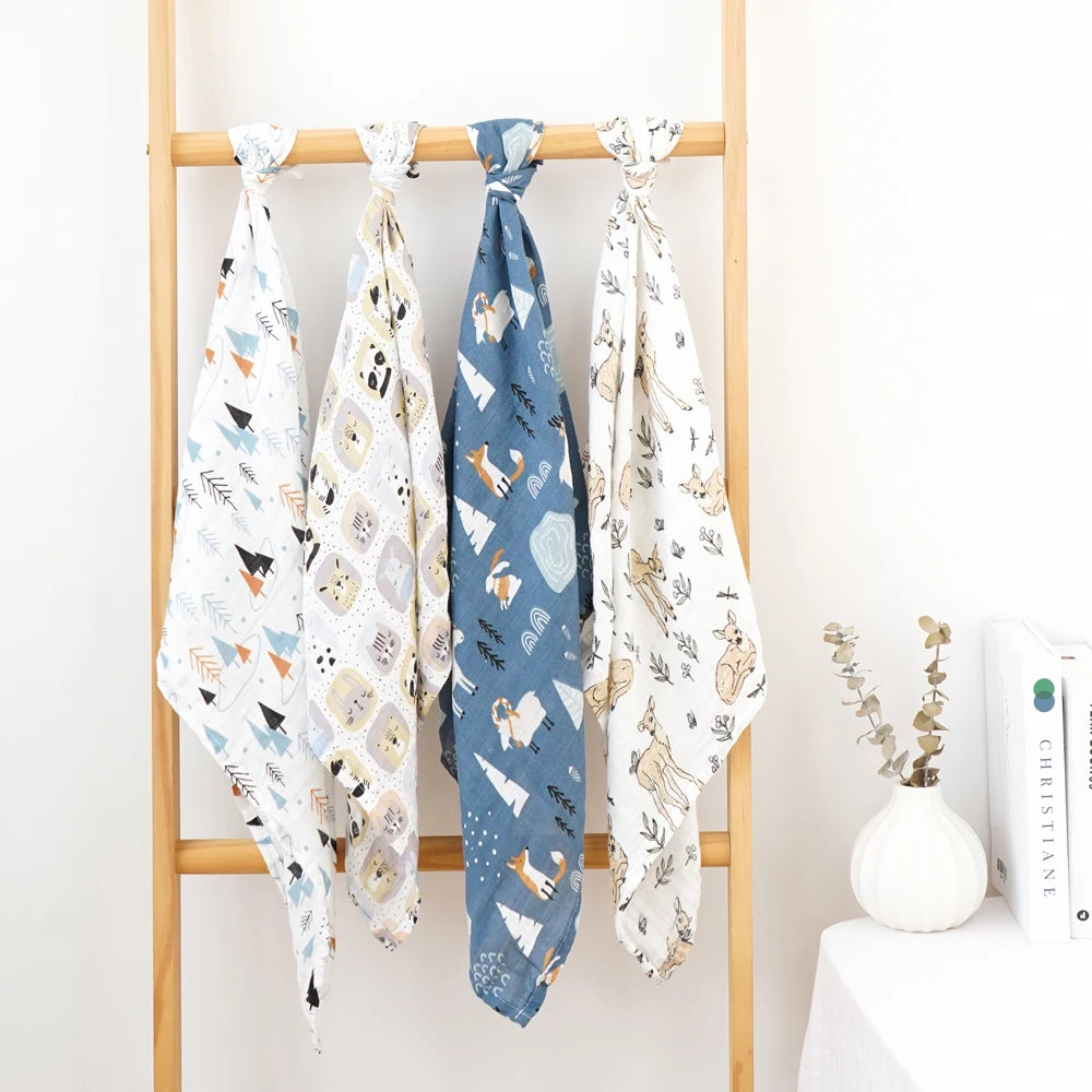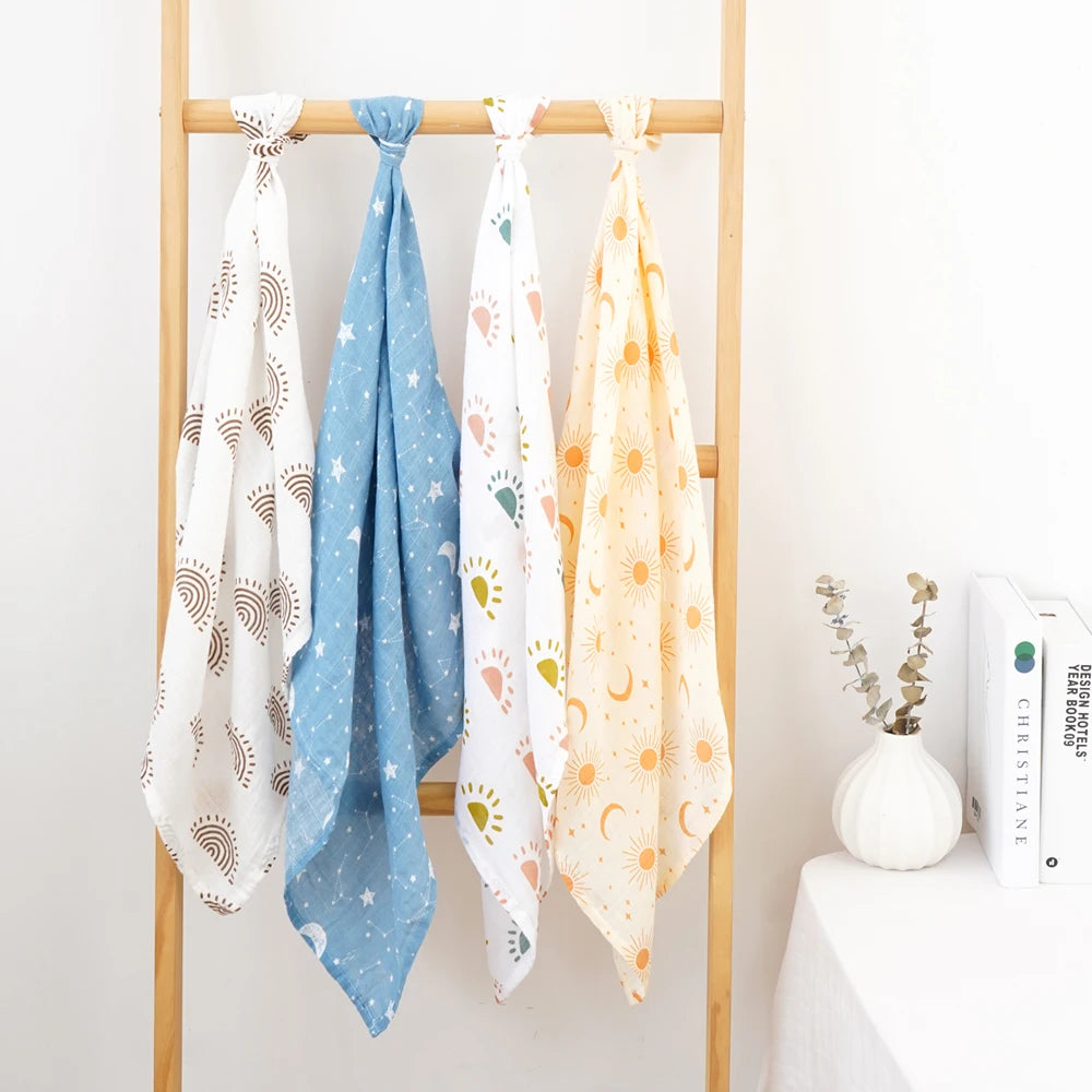Invest in quality and comfort with our 4Pcs/Set of soft muslin blankets. Whether you're a new parent or looking for a practical gift for a baby shower, these blankets are sure to be appreciated. Add them to your baby essentials collection and enjoy the convenience and versatility they bring to caring for your little one.