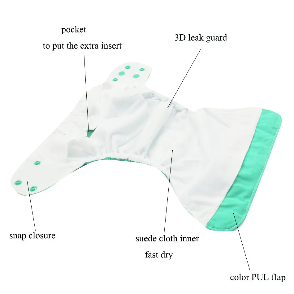 Each pocket diaper is designed for maximum absorbency and comfort, making it ideal for day or nighttime use. The adjustable diaper cover ensures a snug and secure fit, while the washable and reusable design helps reduce waste and save money.