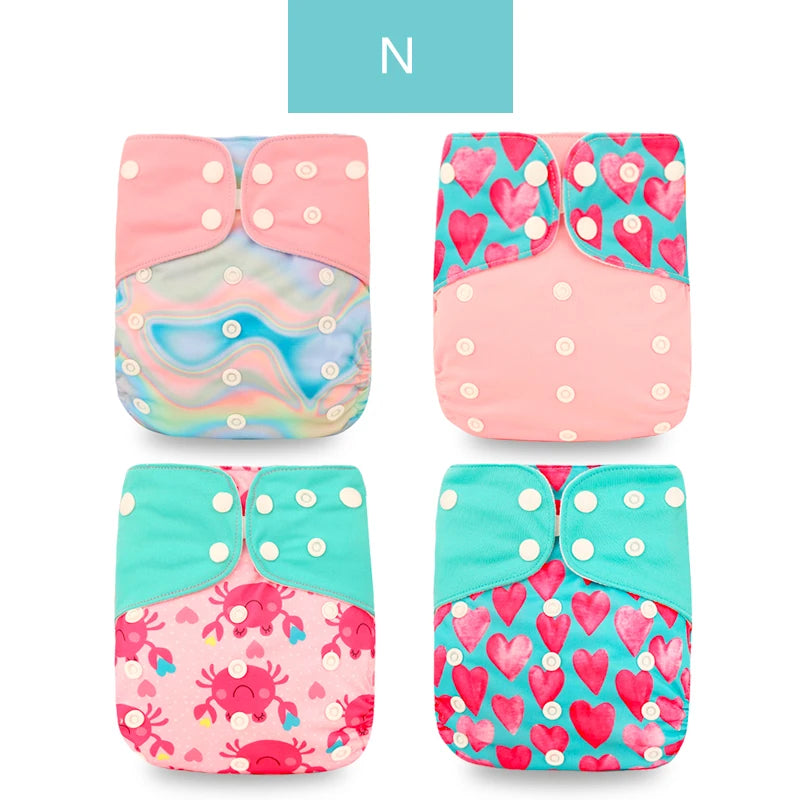 4-Piece Set OS Pocket Diaper: Washable & Reusable Baby Nappy with Adjustable Diaper Cover