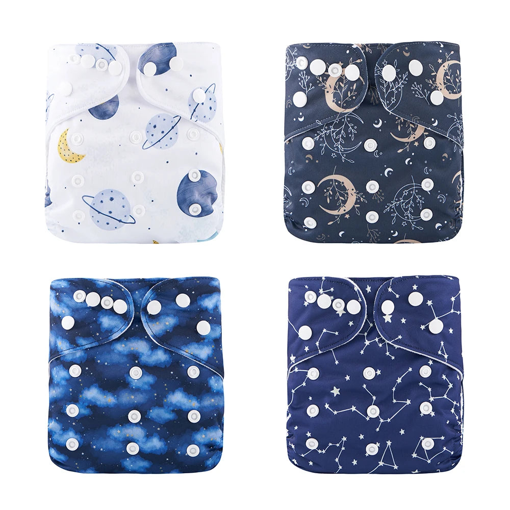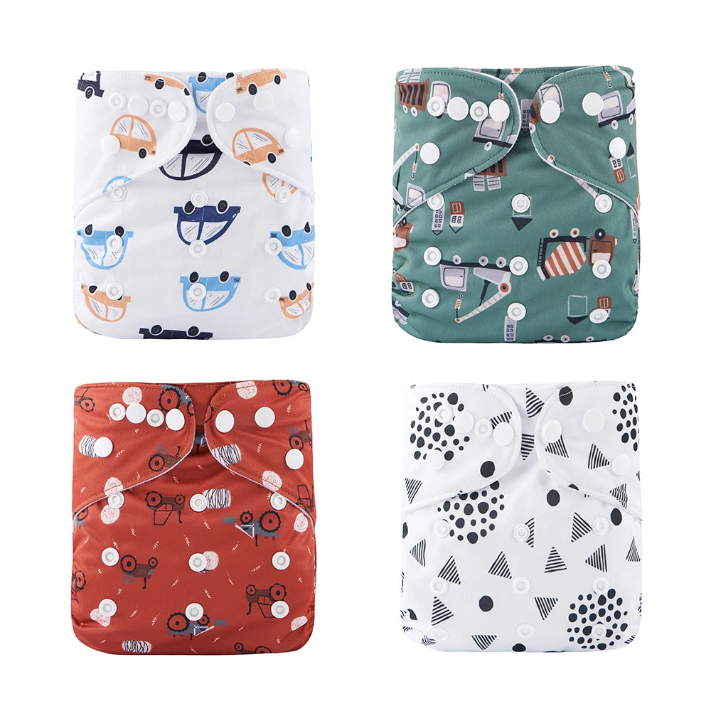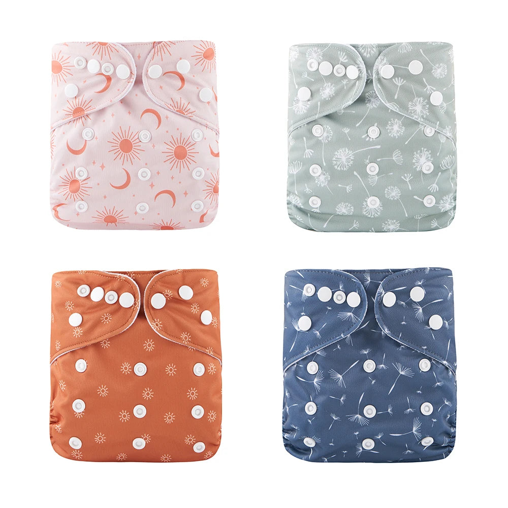 4Pcs/Set: OS Pocket Waterproof Nappy, Washable & Reusable, Adjustable Baby Diaper Cover