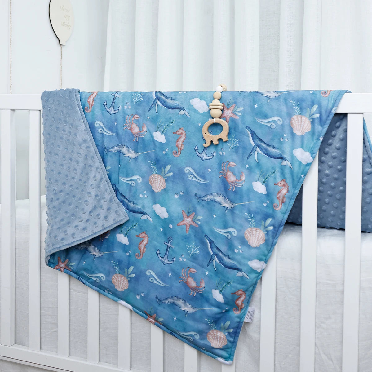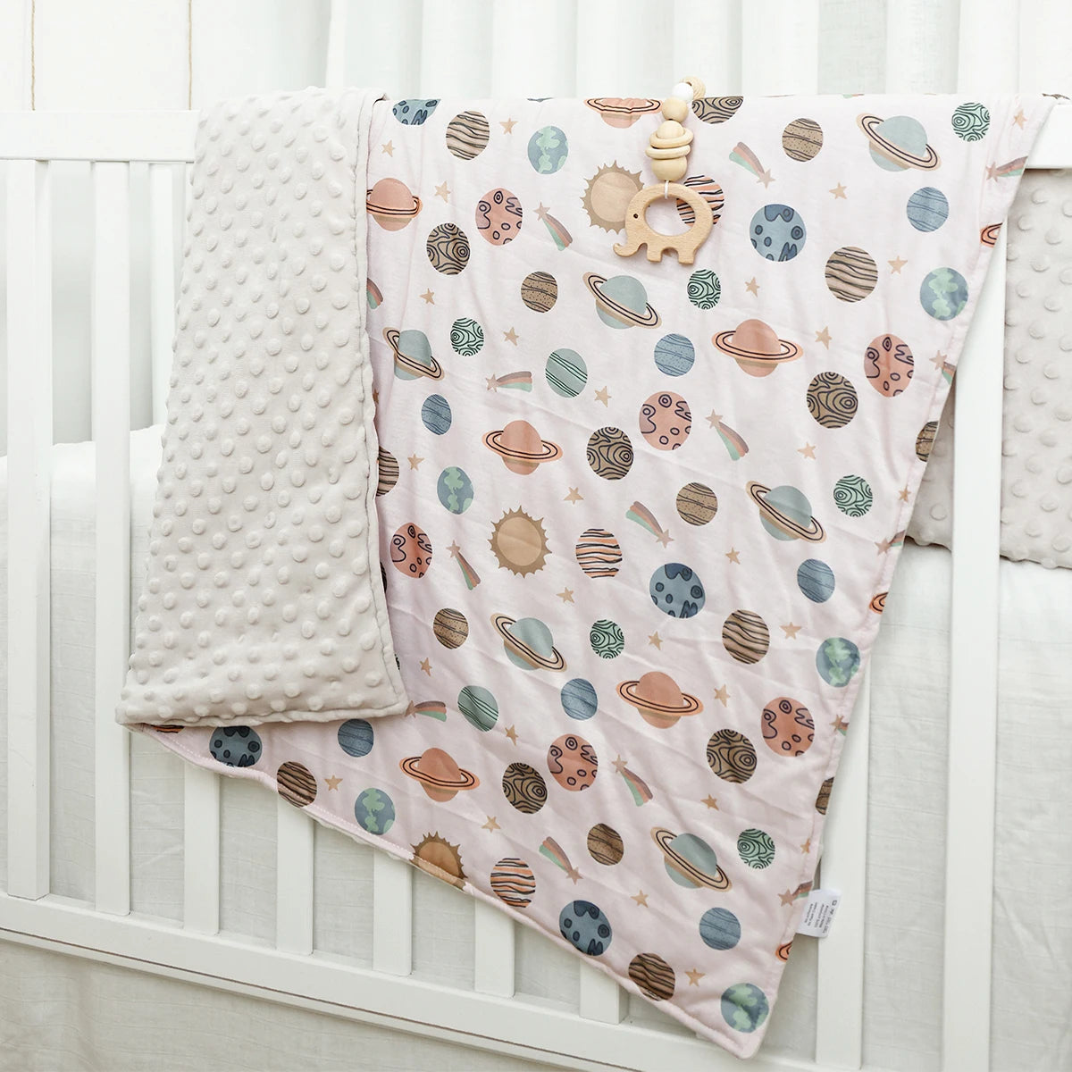 Featuring a printed design, this blanket adds a touch of style to your baby's nursery or crib. Its thickness provides adequate insulation for moderate temperatures, making it ideal for use during cooler seasons.
