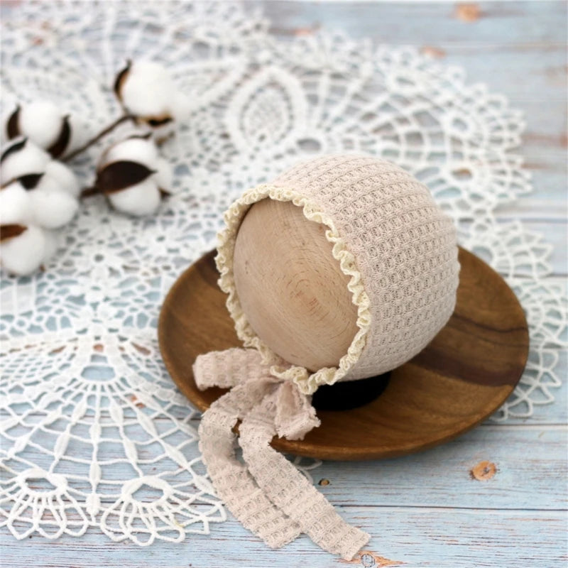 Capture precious moments with our Adjustable Lace Baby Beanie Cap, perfect for newborn photography props. Crafted from soft and delicate knitted nylon, this hat offers both style and comfort for your little one.