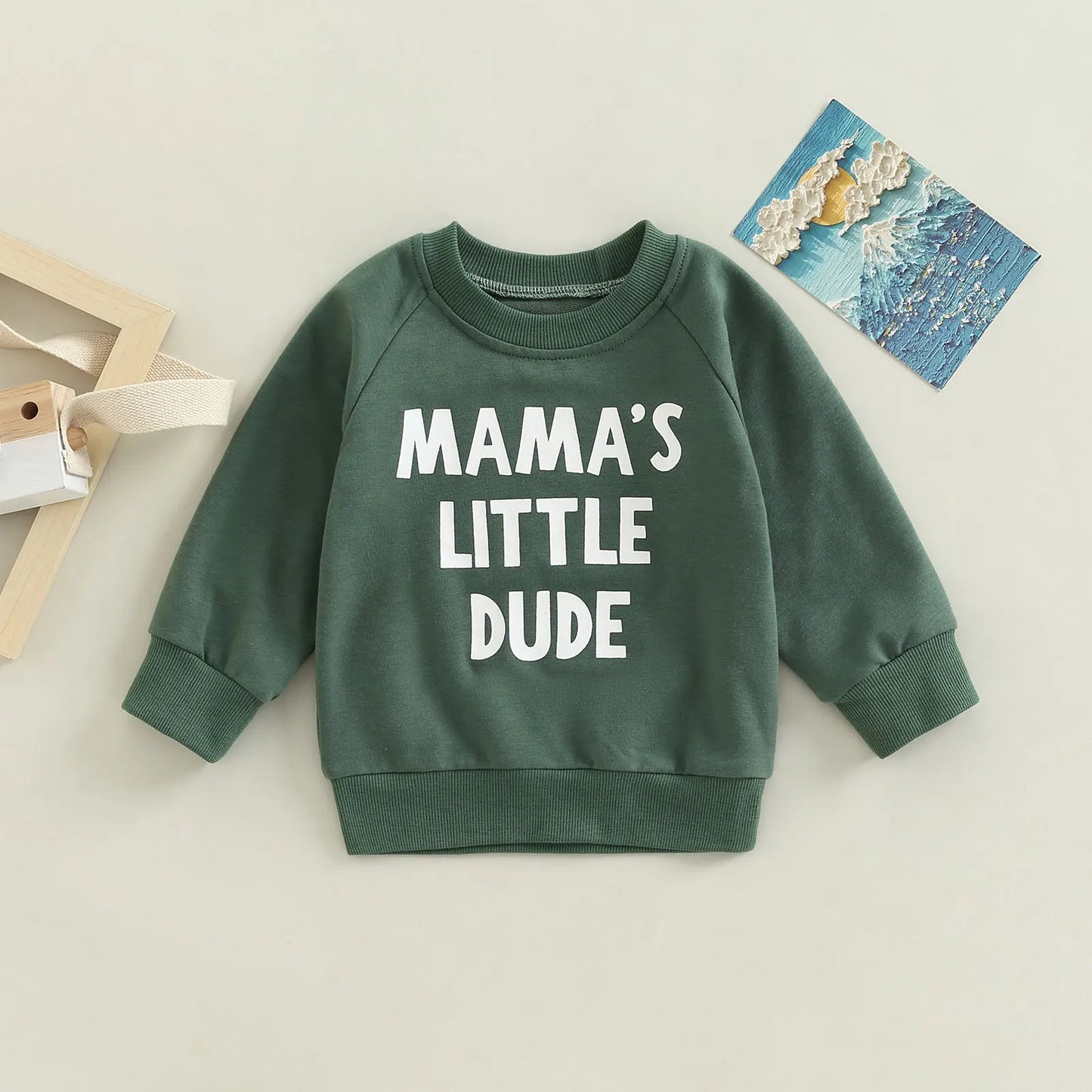 Made from soft and breathable fabric, this pullover keeps your little boy comfortable throughout the day. Whether it's a day at the park or a family gathering, this green sweatshirt is sure to keep him looking stylish and feeling cozy during the fall season. Elevate his autumn look with this must-have addition to his closet.