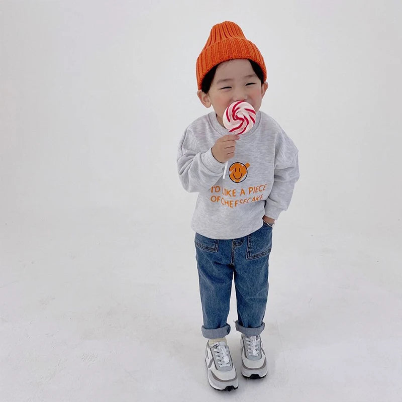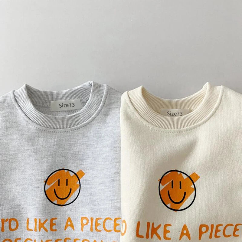 Crafted from soft cotton, the set includes a long-sleeved top featuring a cheerful letter smile design, paired with comfortable pants. Whether they're playing indoors or out, this outfit ensures your toddler stays warm and stylish.