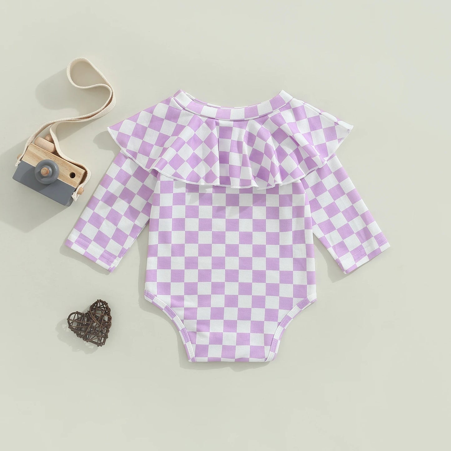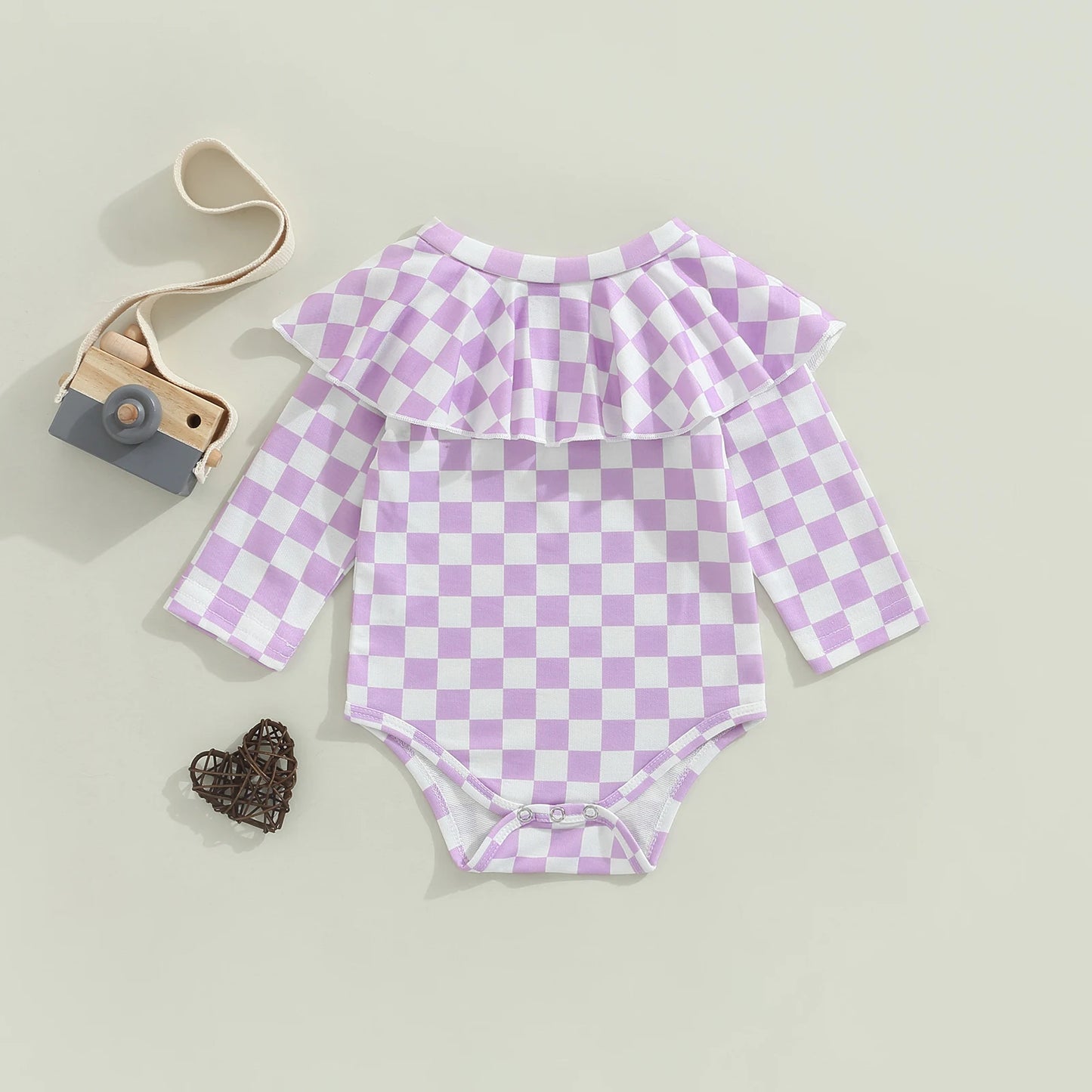 Dress your little princess in adorable autumn style with our 0-24M Newborn Baby Girl Bodysuit. This charming jumpsuit features long sleeves, an O-neck neckline, and a stylish plaid print, available in three delightful colors.