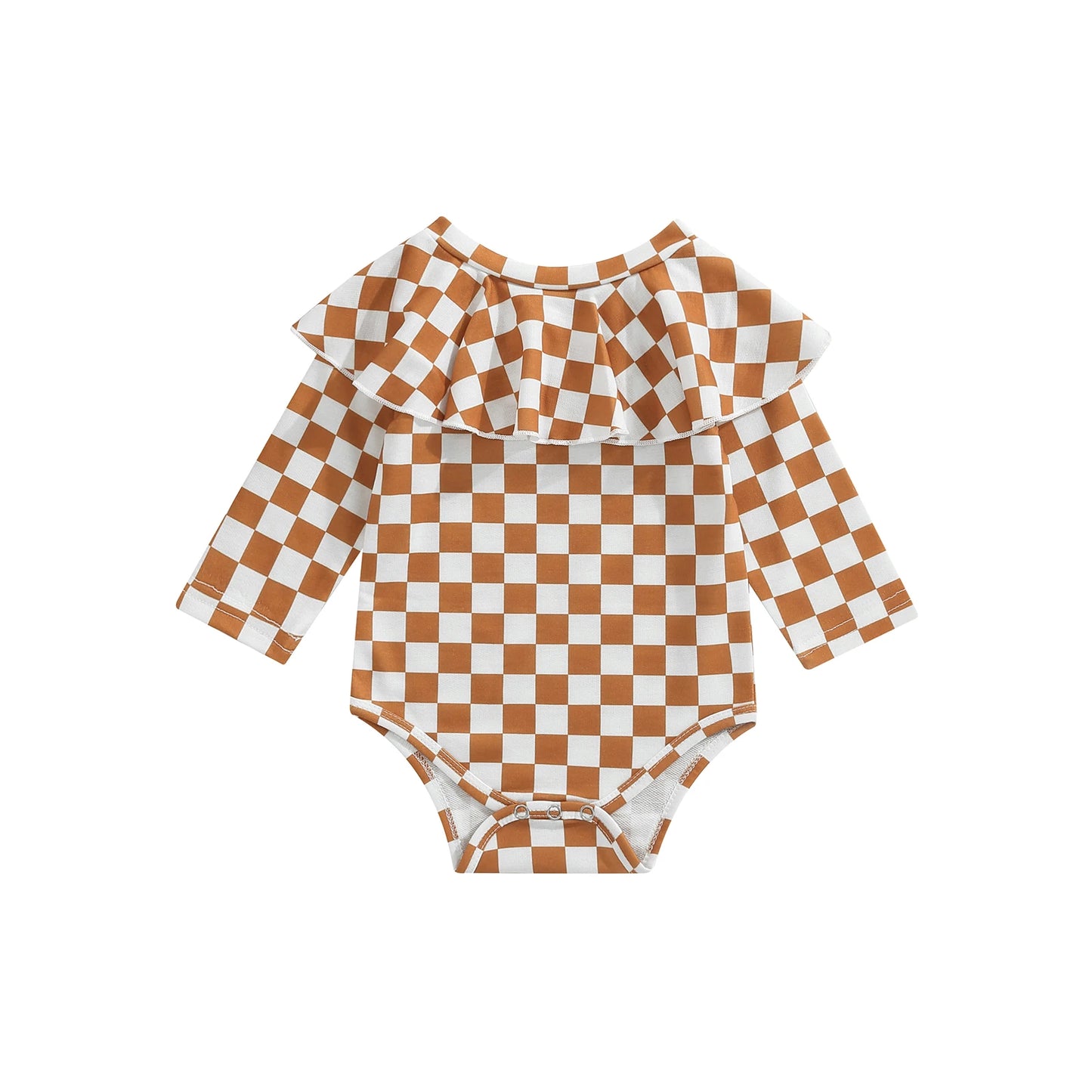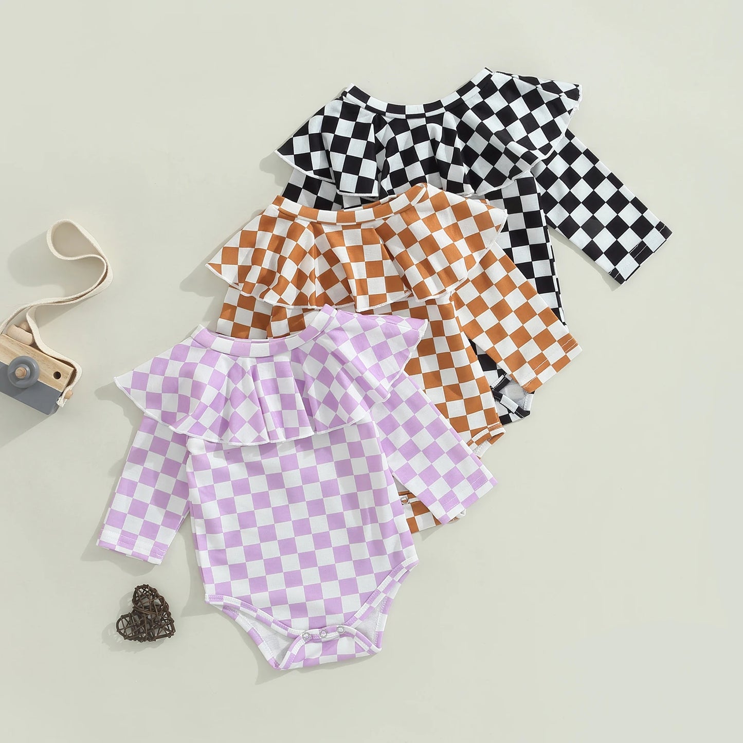 Baby Bodysuit: Long Sleeve Plaid Printed O-Neck Jumpsuit - 3 Colors