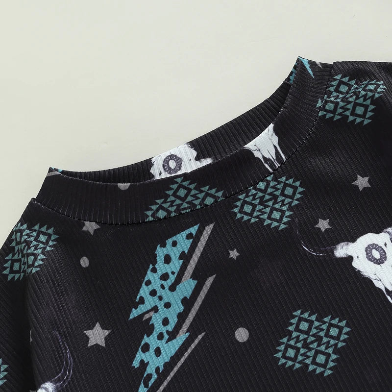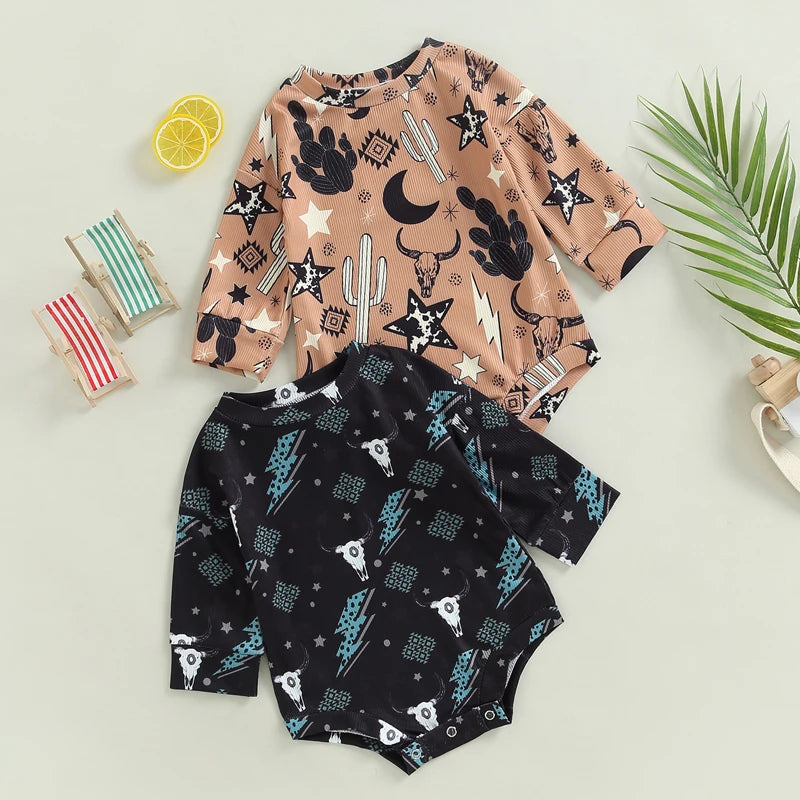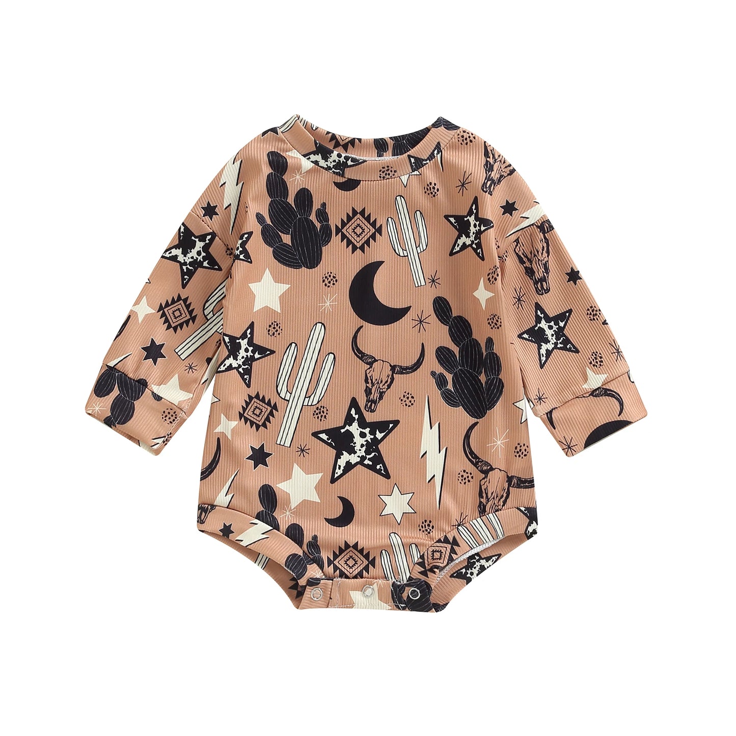 Baby Boy Bodysuit - Long Sleeve Crew Neck Bull Head Print Fall Jumpsuit
