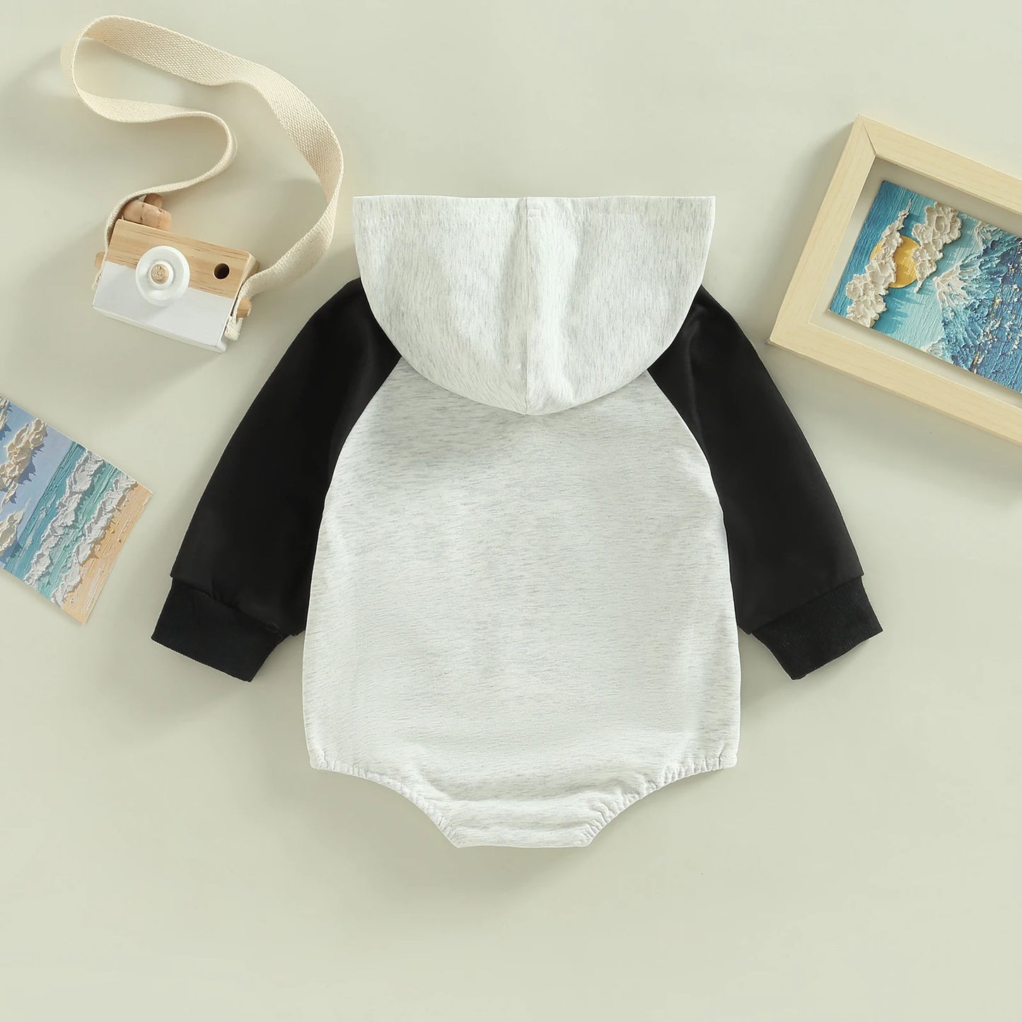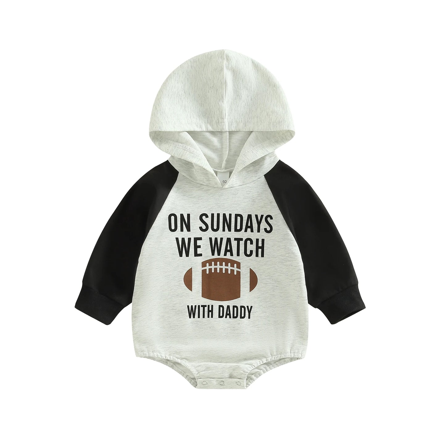Baby Boy Fall Winter Hooded Bodysuit - Long Sleeve Football Letter Print Raglan Jumpsuit