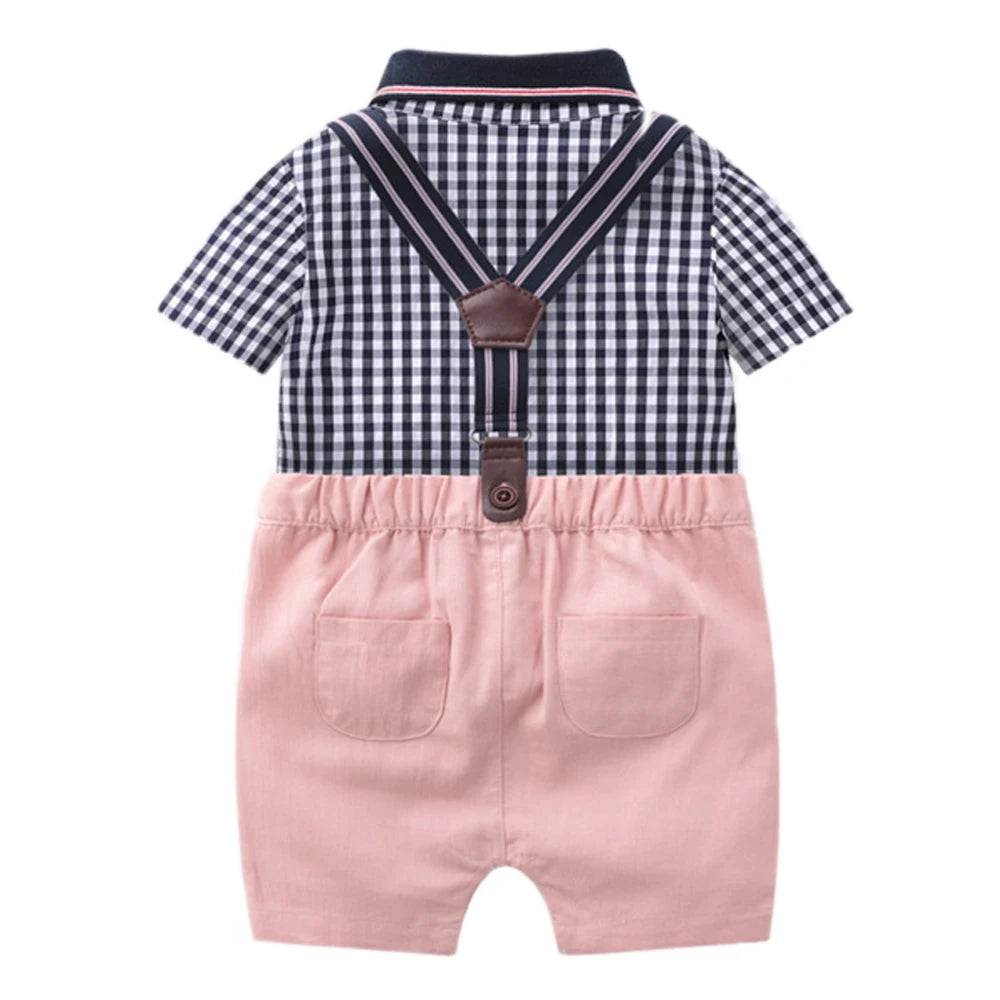 Baby Boy Formal Plaid Romper Overalls - Handsome Birthday Party Outfit