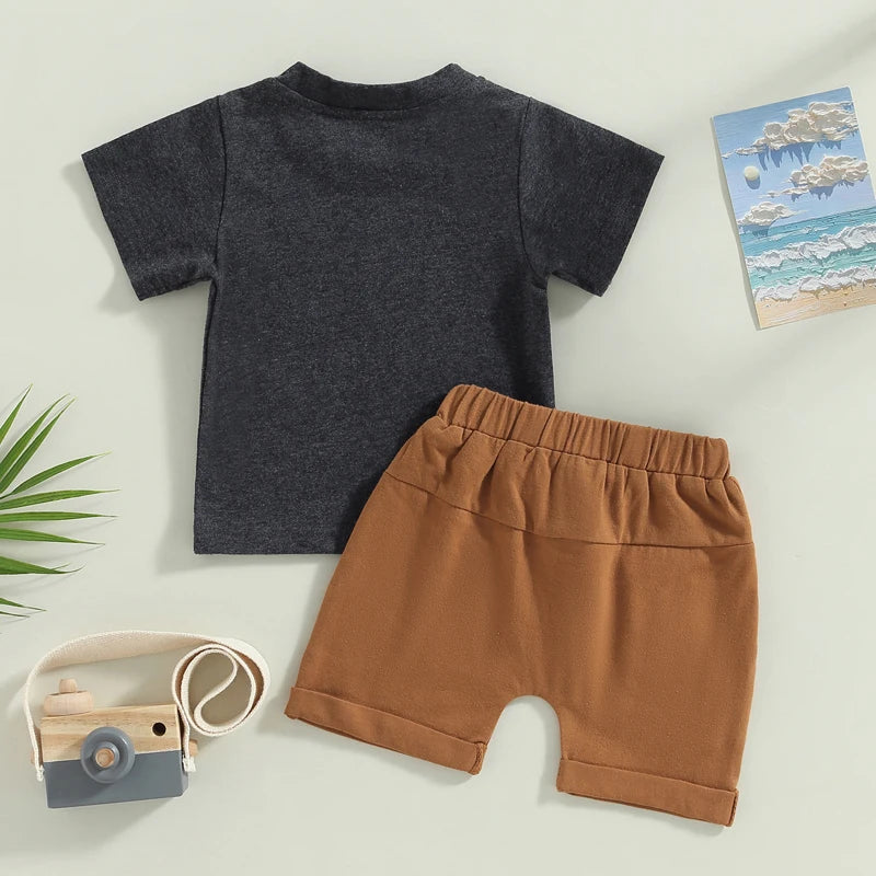 Crafted from lightweight and breathable materials, this outfit ensures your baby stays cool and comfortable in the heat. The elastic waistband on the shorts provides a secure fit, allowing for unrestricted movement during playtime. Whether it's exploring the great outdoors or lounging at home, your little adventurer will look and feel great in this versatile set.