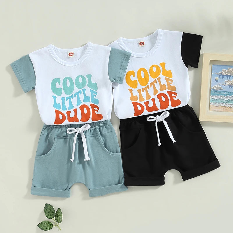 Prepare your little boy for summer adventures with our Baby Boys 2-Piece Summer Shorts Set. This ensemble features a short sleeve letters print t-shirt paired with elastic waist shorts, suitable for ages 0 to 3 years.
