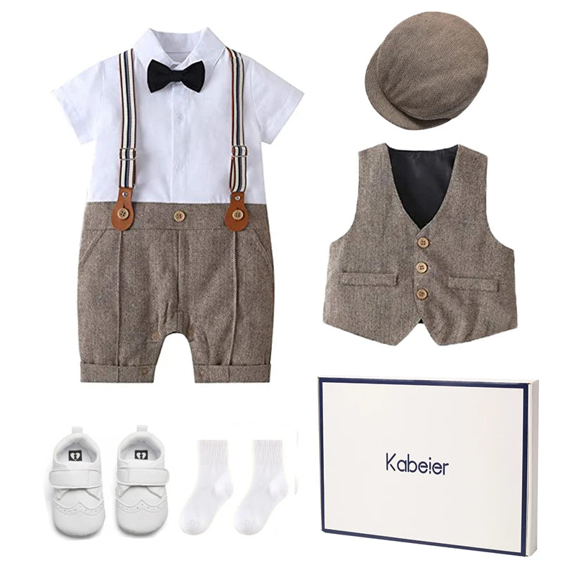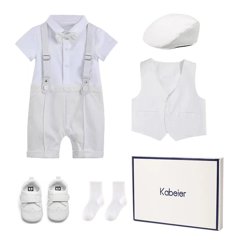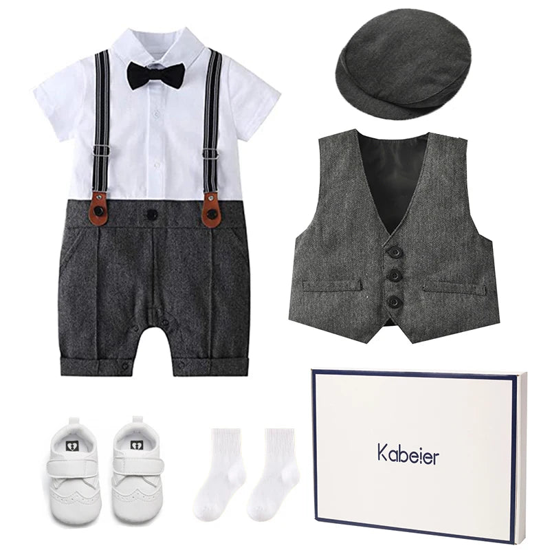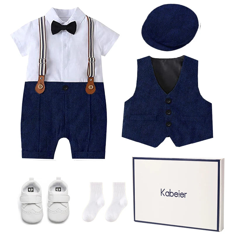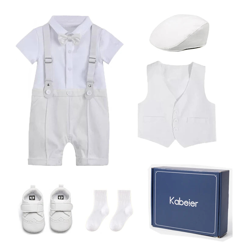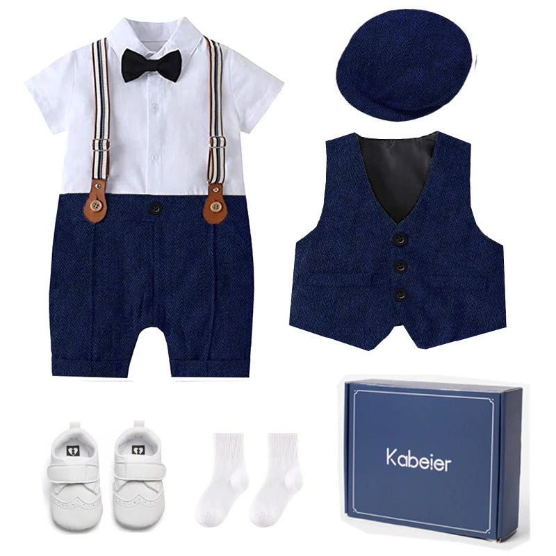 The patchwork romper adds a touch of whimsy to your baby's wardrobe, while the formal outfits exude elegance and sophistication. Perfect for special occasions, each piece in this set is carefully crafted to ensure your little one looks his best.