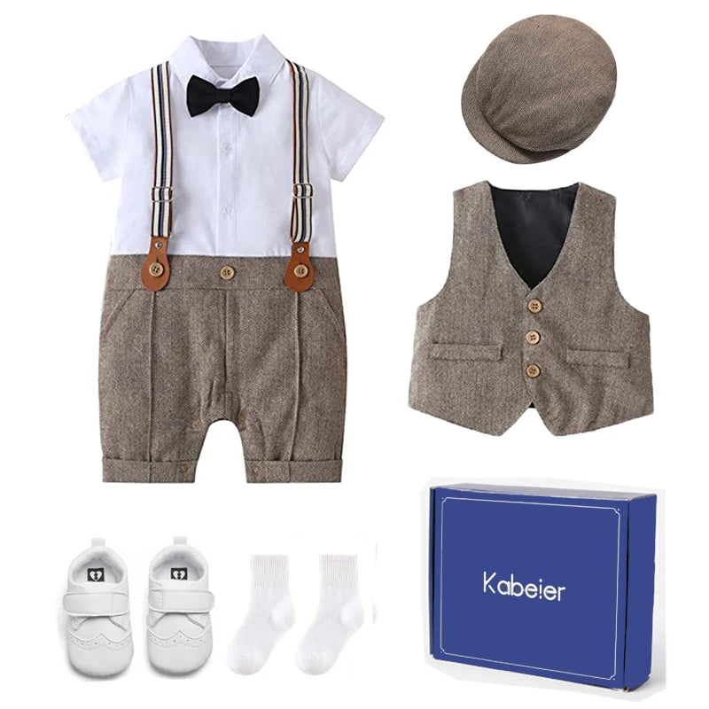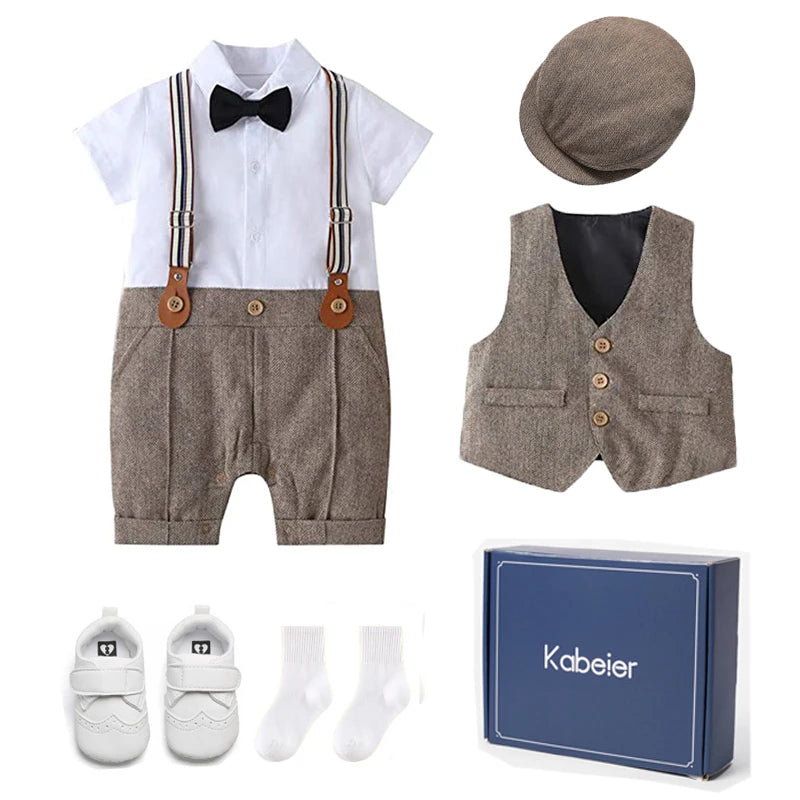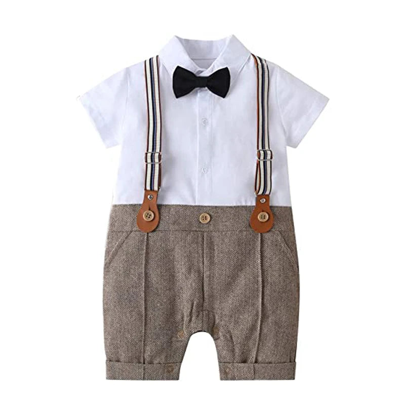 Baby Boys Gentleman Clothes Set: Patchwork Romper, Formal Outfits for Birthday, Wedding, Baptism
