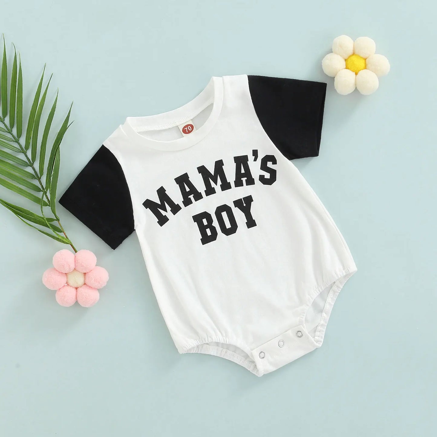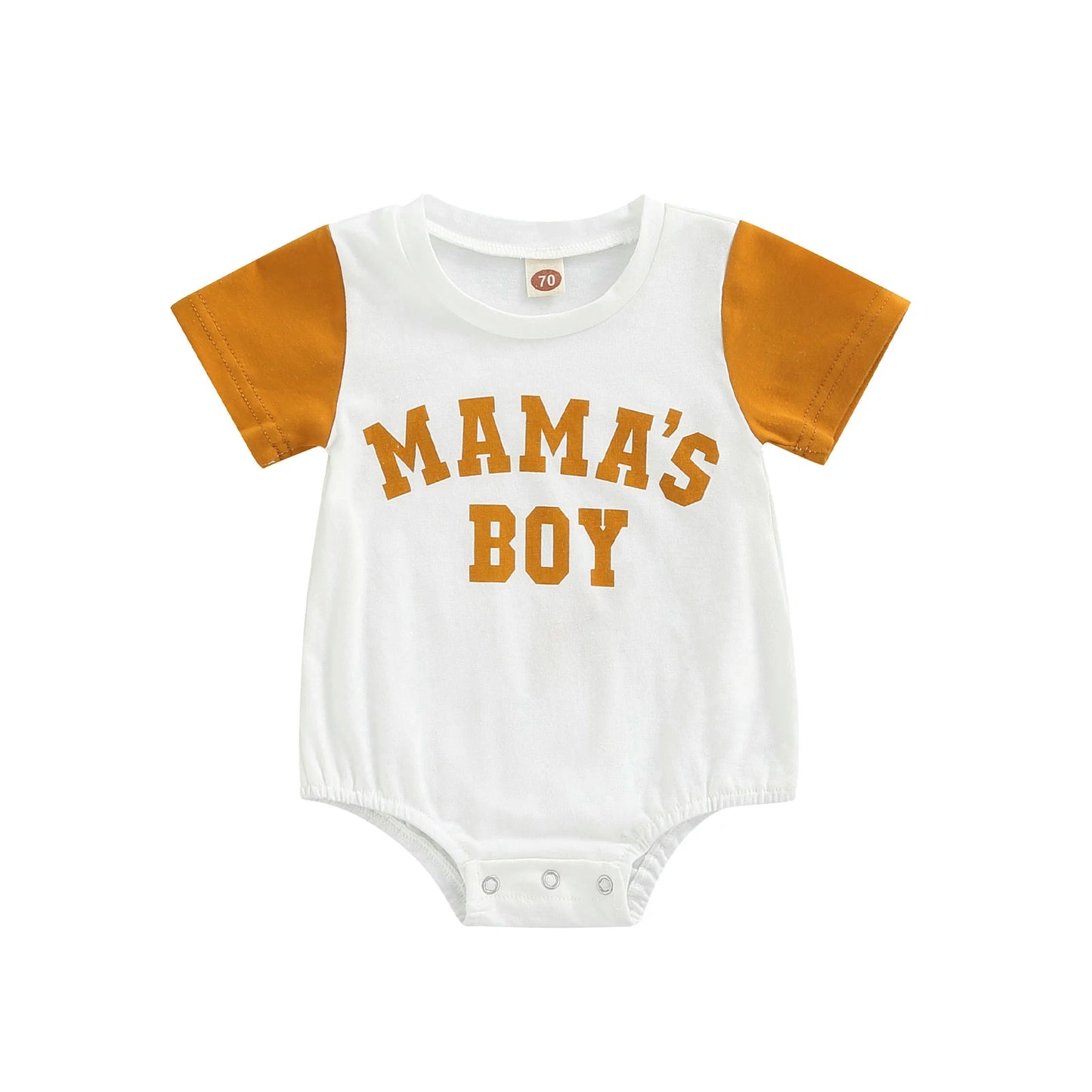 Baby Boys Summer Independence Day Bodysuit - Short Sleeve Letter Print Patchwork Playsuit