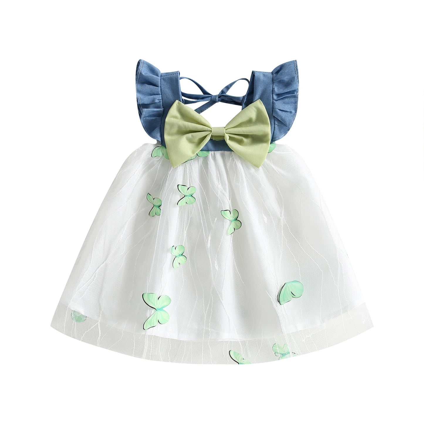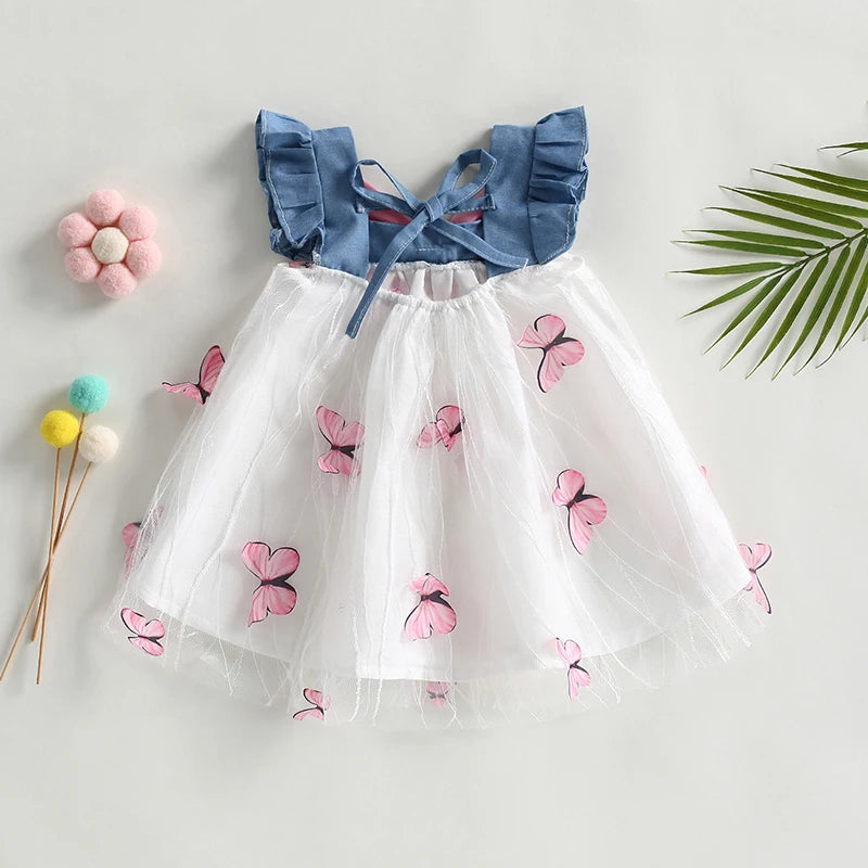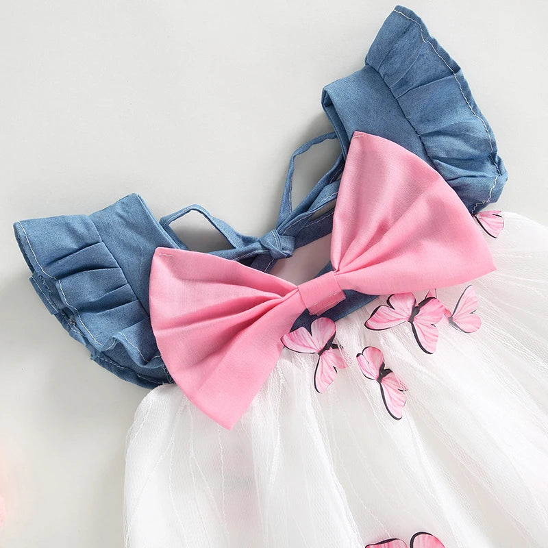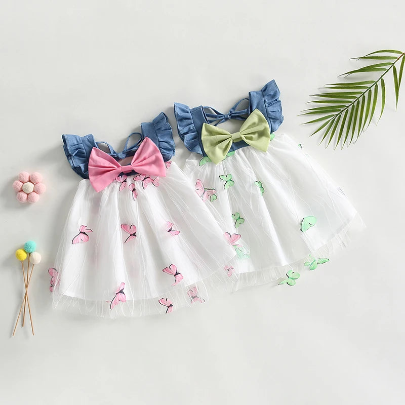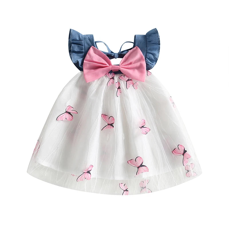 Baby Girls Tulle Dress - Sleeveless Bowknot Butterfly Patchwork A-line Dress for Daily Party