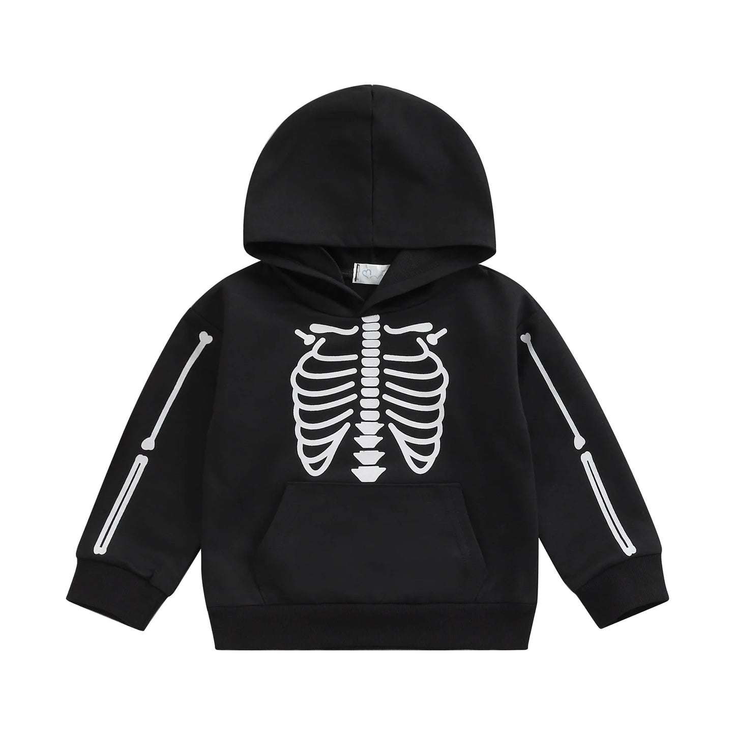 Baby Halloween Hoodies - Casual Long Sleeve Pumpkin Skeleton Print Loose Sweatshirts (5 Years)
