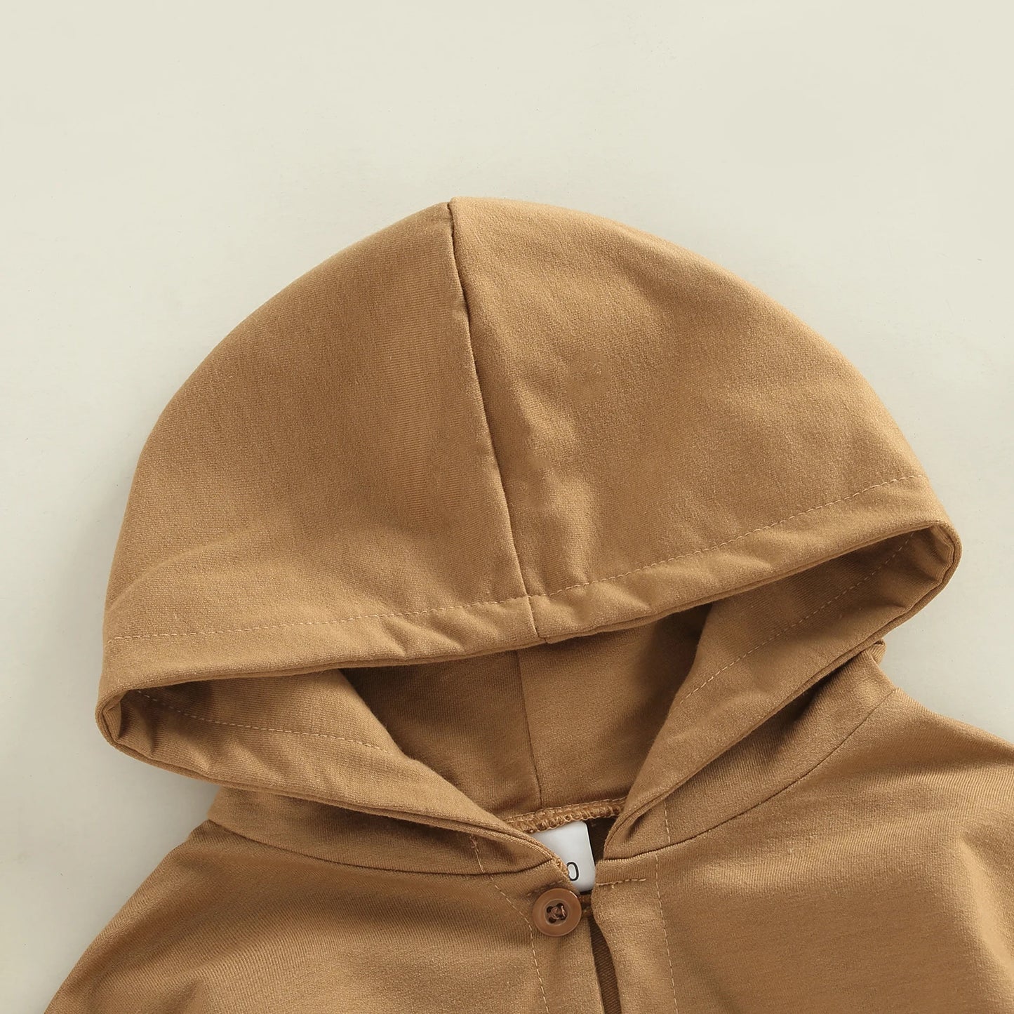 Ensure your little one stays snug and fashionable with our Hooded Patchwork Jumpsuit. Order now and dress your baby in adorable attire for any occasion!