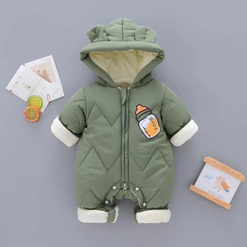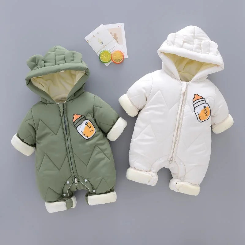 Keep your little one cozy and snug with our Baby Hooded Cotton Rompers. These fleece-lined onesies are perfect for newborn boys and girls, providing warmth and comfort during chilly weather.