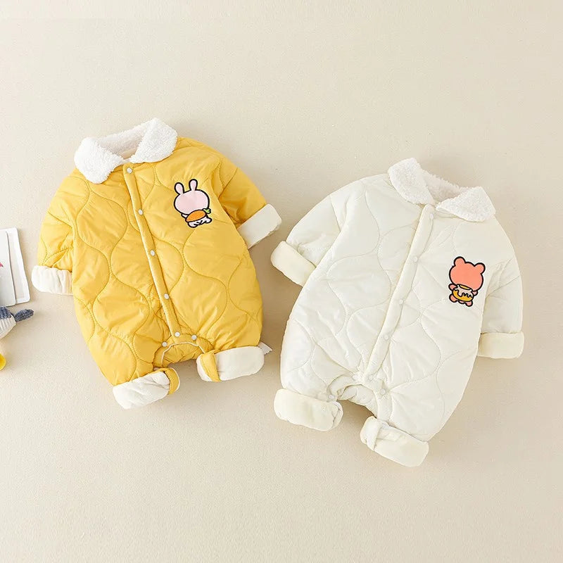 Whether your baby is playing at home or out for a walk, these versatile rompers are sure to keep them comfortable and stylish. The thick material provides insulation against the cold, ensuring your little one stays warm during the colder months.