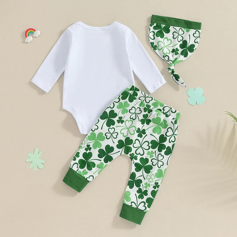 Baby Irish Outfit - Shamrock Print Long Sleeve Rompers and Elastic Pants Beanie Set Spring Clothes (0-12 Months)