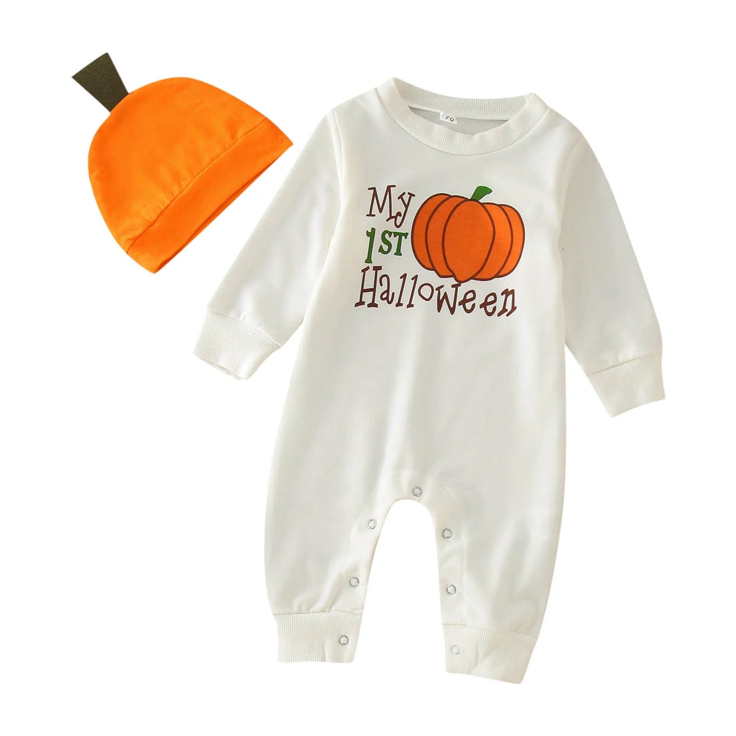 Dress your little one in adorable Halloween style with our Baby Toddler Boys Long Sleeve Halloween Pumpkin Prints Newborn Rompers Jumpsuits Outfits. These charming rompers feature fun pumpkin prints, perfect for adding a festive touch to your baby's wardrobe during the Halloween season.