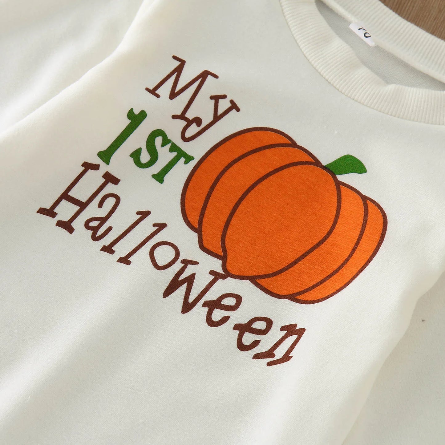 Baby Long Sleeve Halloween Pumpkin Prints Newborn Rompers Jumpsuits Outfits
