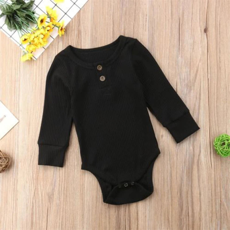 Baby Romper: Long Sleeve Solid Cotton Jumpsuit Playsuit Clothes Outfits